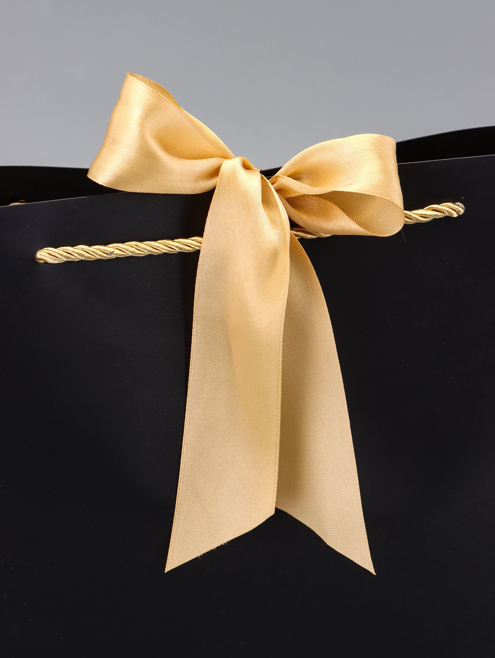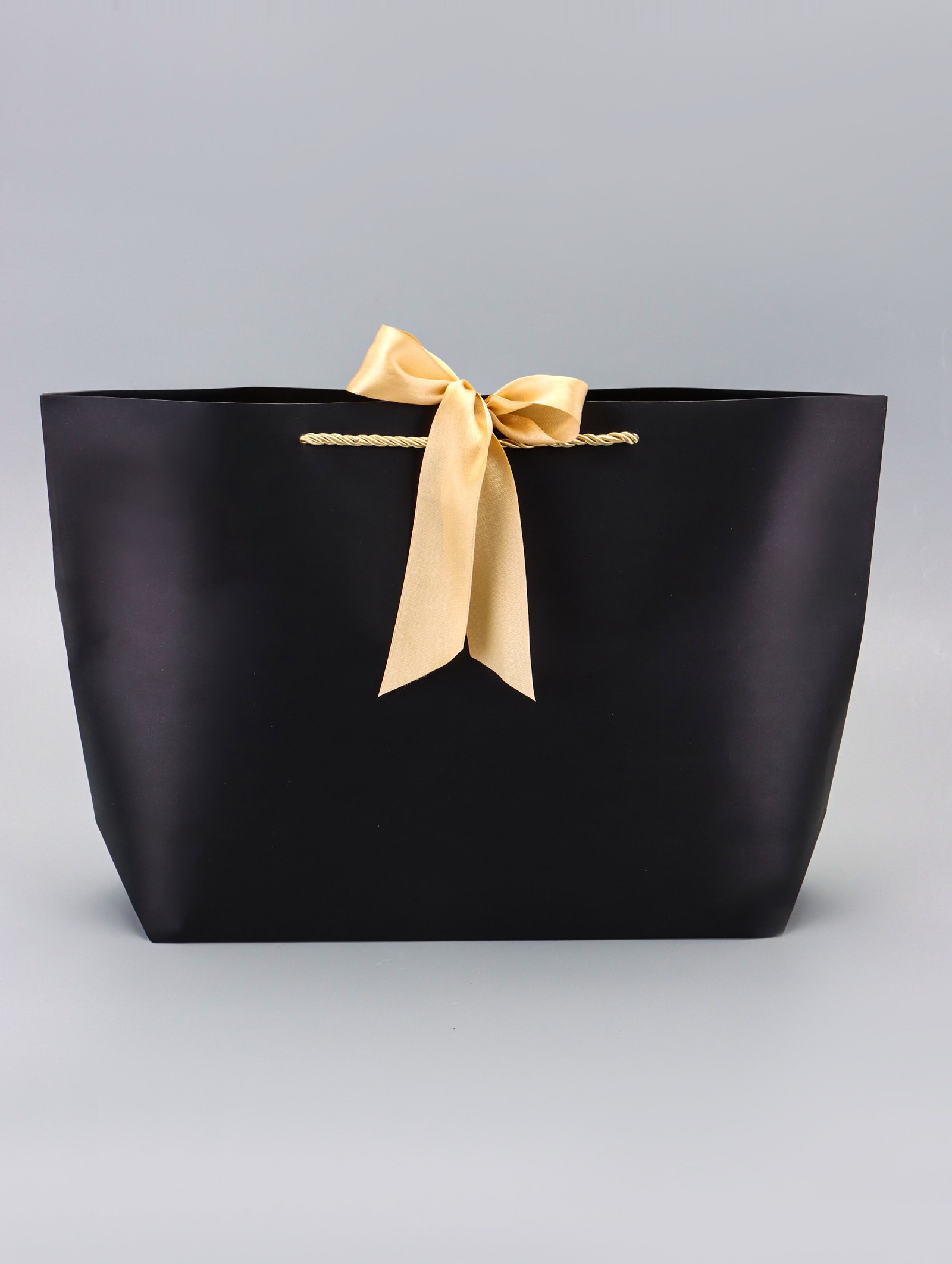 Пакет подарочный ламинированный, с лентой "Чёрный", горизонтальный, 30x27.5x12 см, 27x42x11 см., UPAK LAND, Китай