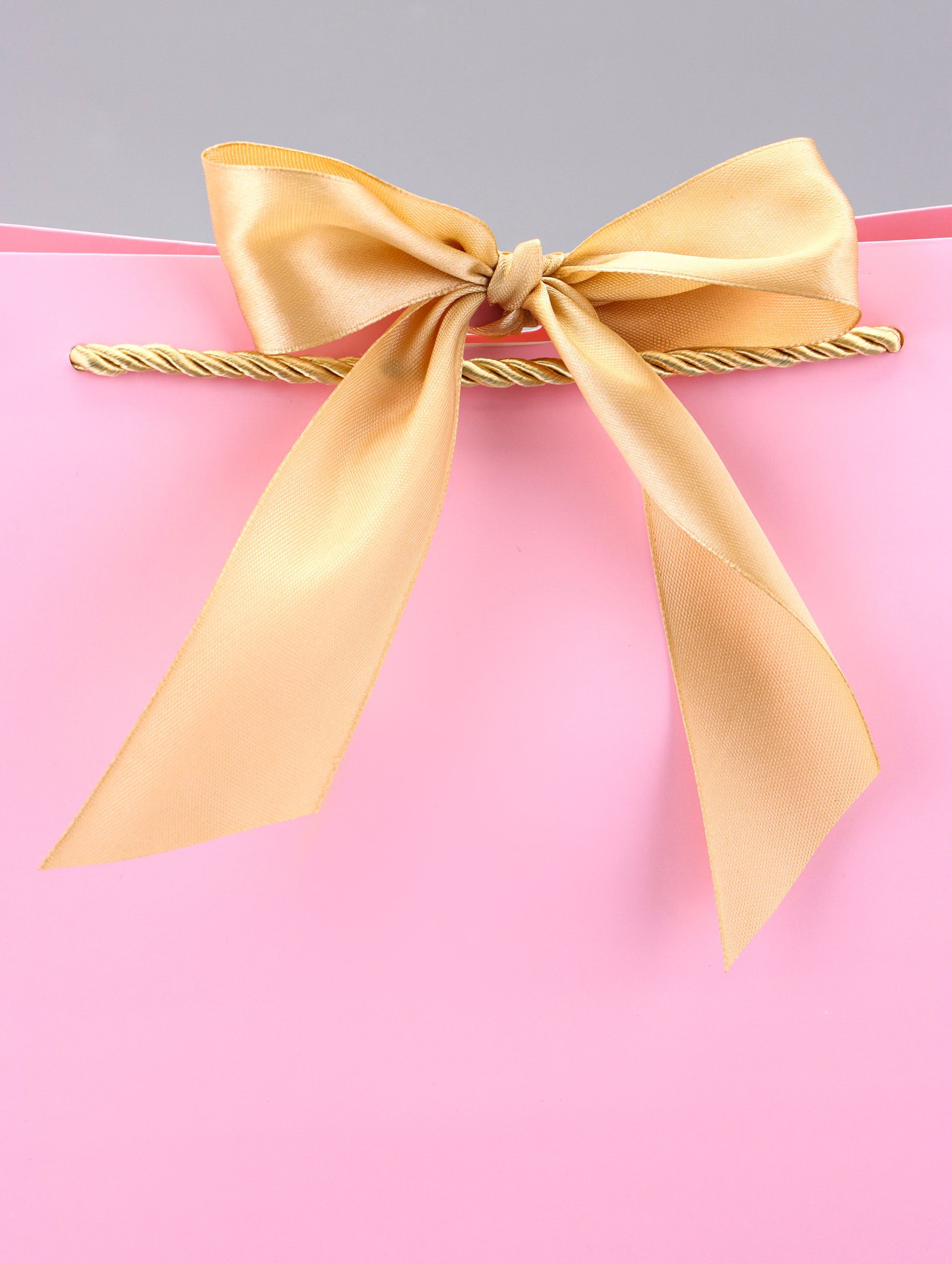 Пакет подарочный ламинированный, с лентой "Розовый", горизонтальный, 30x27.5x12 см, 27x42x11 см., UPAK LAND, Китай