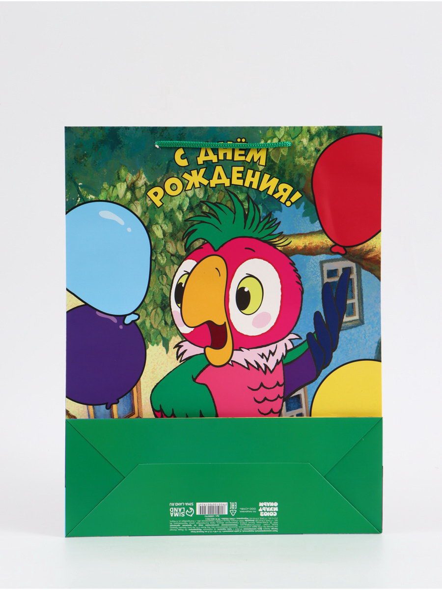 Пакет подарочный "С днём рождения", 31x40x11.5 см, упаковка, Попугай Кеша, 40x31x11.5 см., Союзмультфильм, Китай