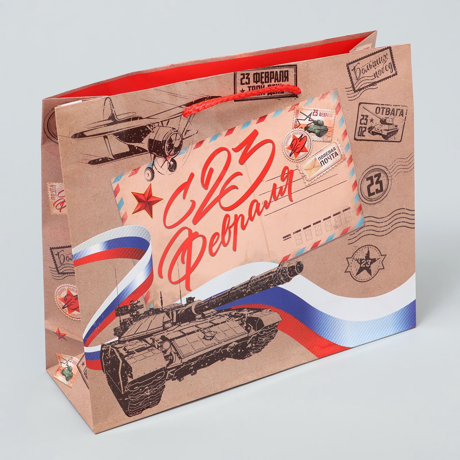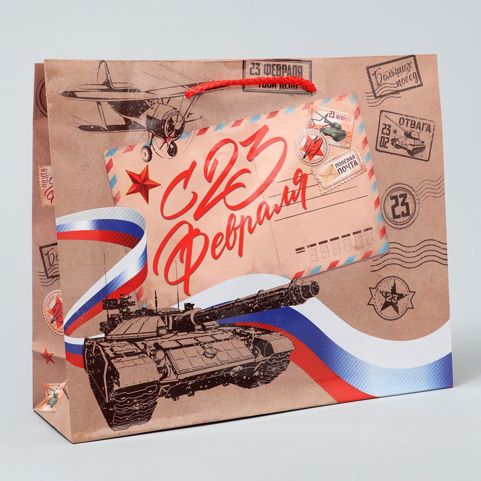 Цвет: Коричневый, Триколор Тематика: Военная, Мужская Размер упаковки: 25 x 21 x 0.2 см. Плотность, г/?2: 128 Тематика праздника: 23 Февраля Примерный размер: ML (~ 23см x 27см) Вид ручки: Ручка-шнур Особенности: Без особенностей Допустимый вес вложения, г: 700 Допустимый вес вложения, г: 700 tnved: 4819400000 Для кого: Для мужчины Отделка пакета: Без отделки | ||