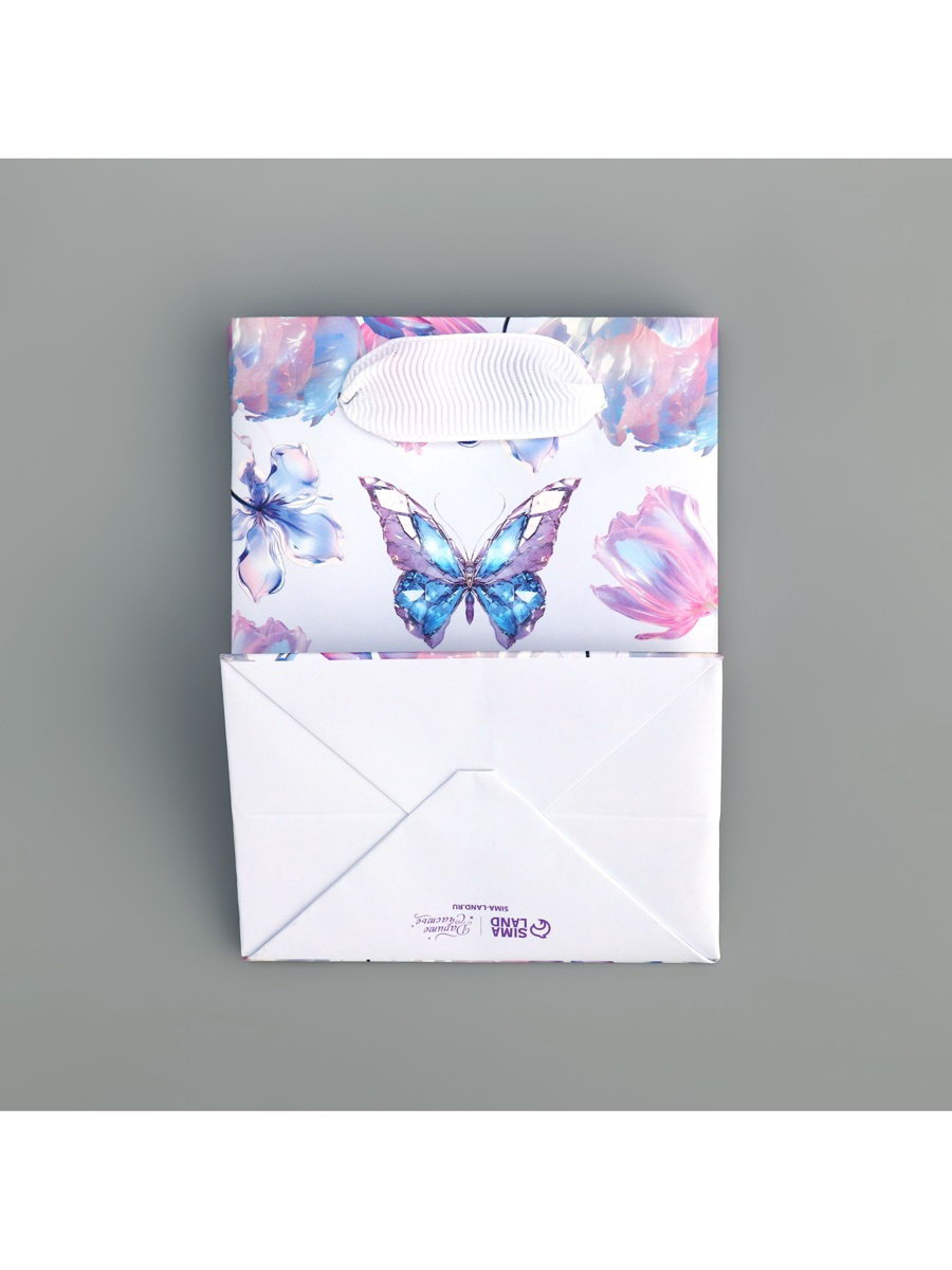 Цвет: Голубой, Сиреневый Тематика праздника: 8 Марта, Универсальная тематика Размер упаковки: 9 x 12 x 0.2 см. Плотность, г/?2: 157 Примерный размер: Мини (<10см) Тематика: Бабочки Отделка пакета: Без отделки Вид ручки: Ручка-лента Особенности: Без особенностей Для кого: Для женщины tnved: 4819400000 Дизайн: С рисунком, надписью | ||