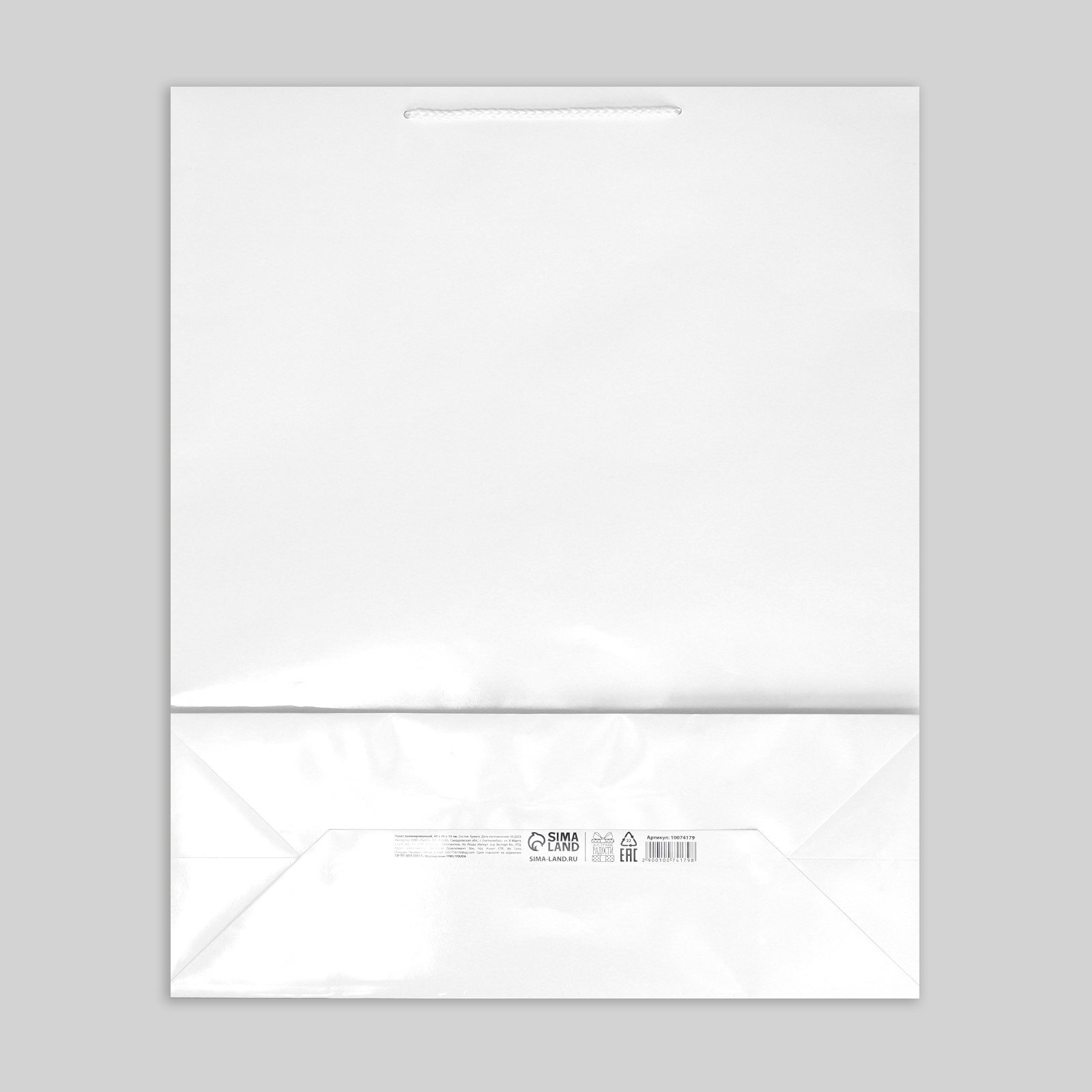 Пакет подарочный ламинированный, упаковка, "Белый", 40 x 49 x 15 см, 49x40x15 см., Доступные Радости, Китай