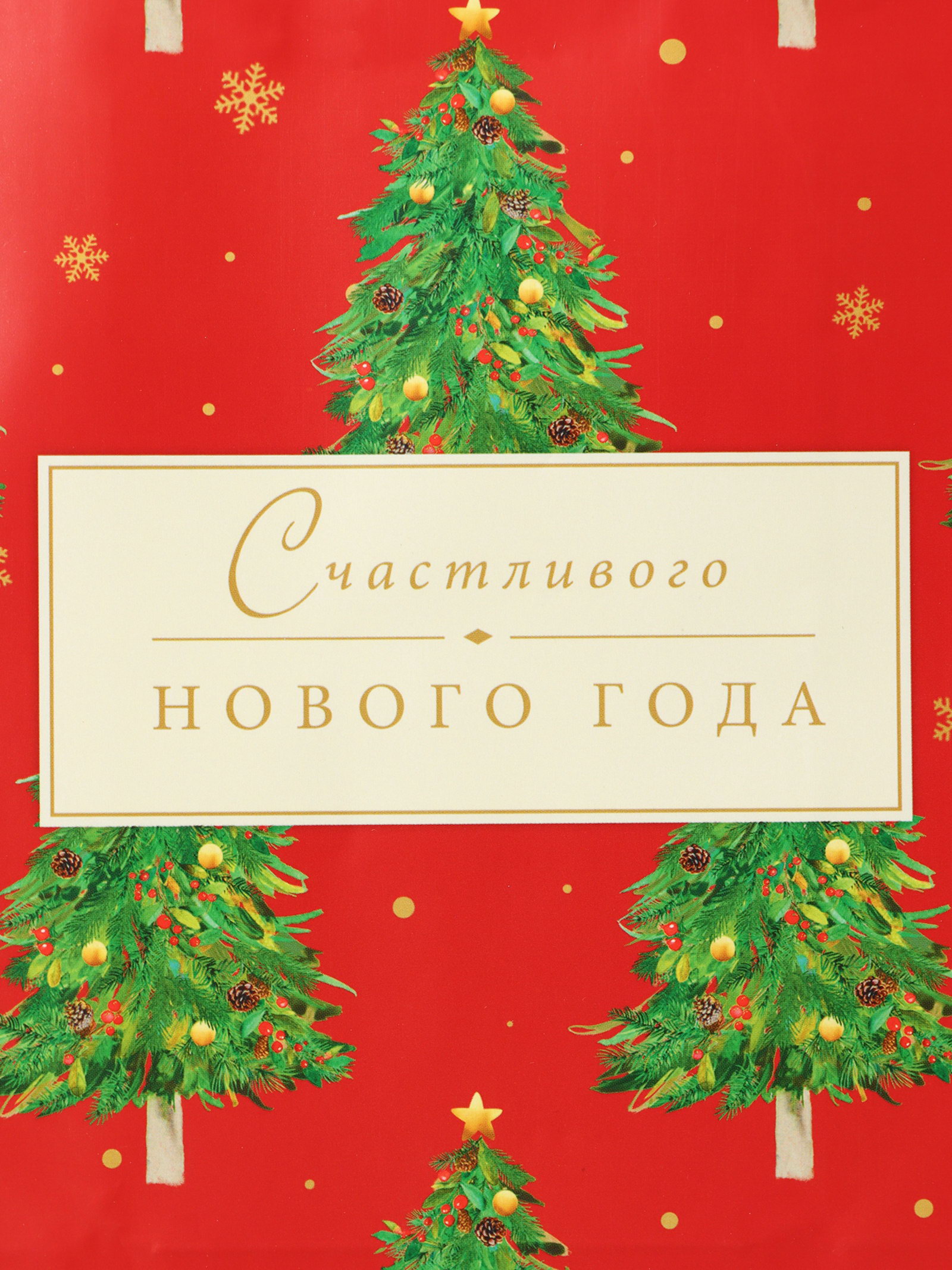 Пакет подарочный новогодний ламинированный "Счастливого Нового года", на бежевом, 18x22.3x10 см, Китай