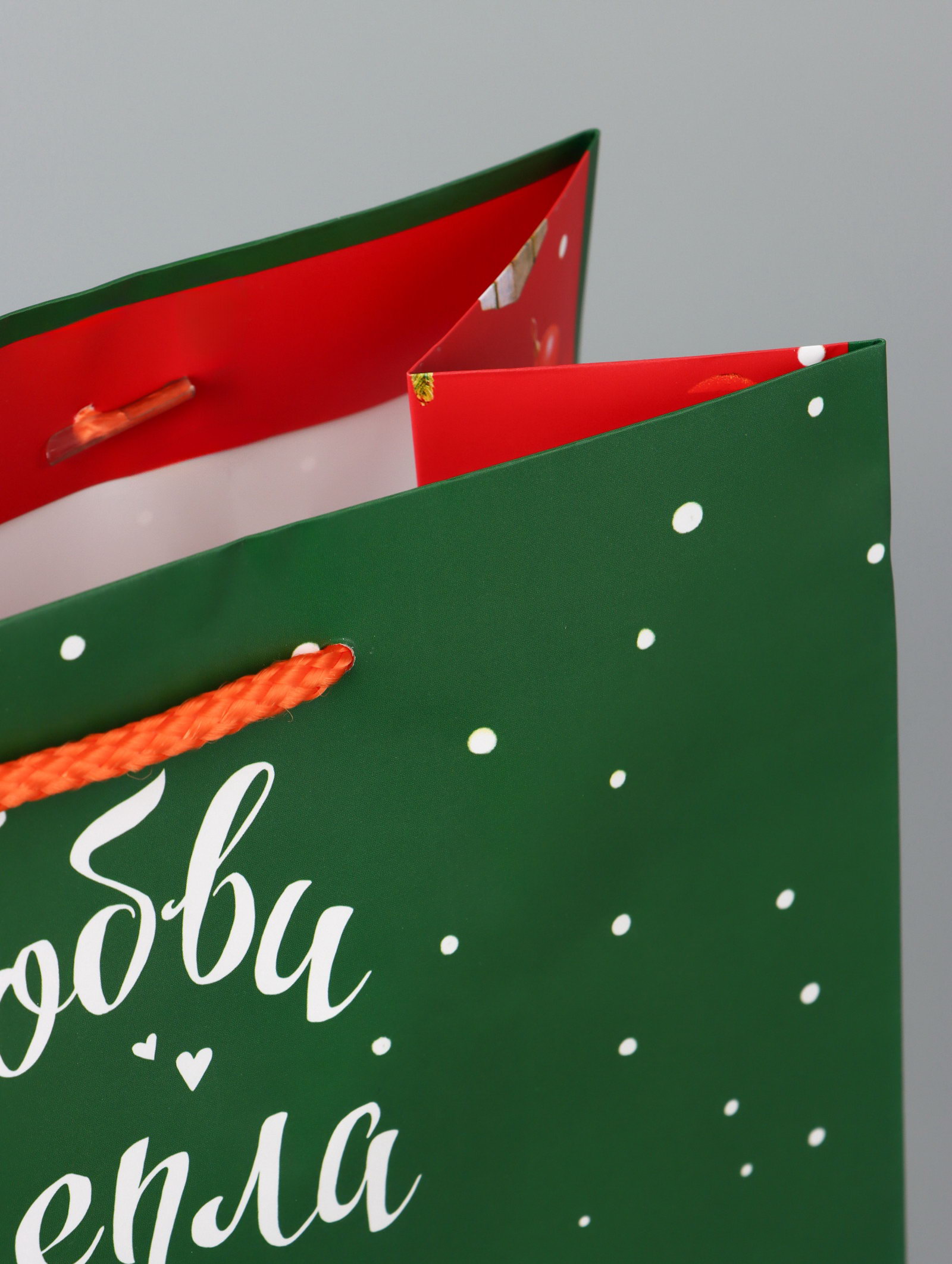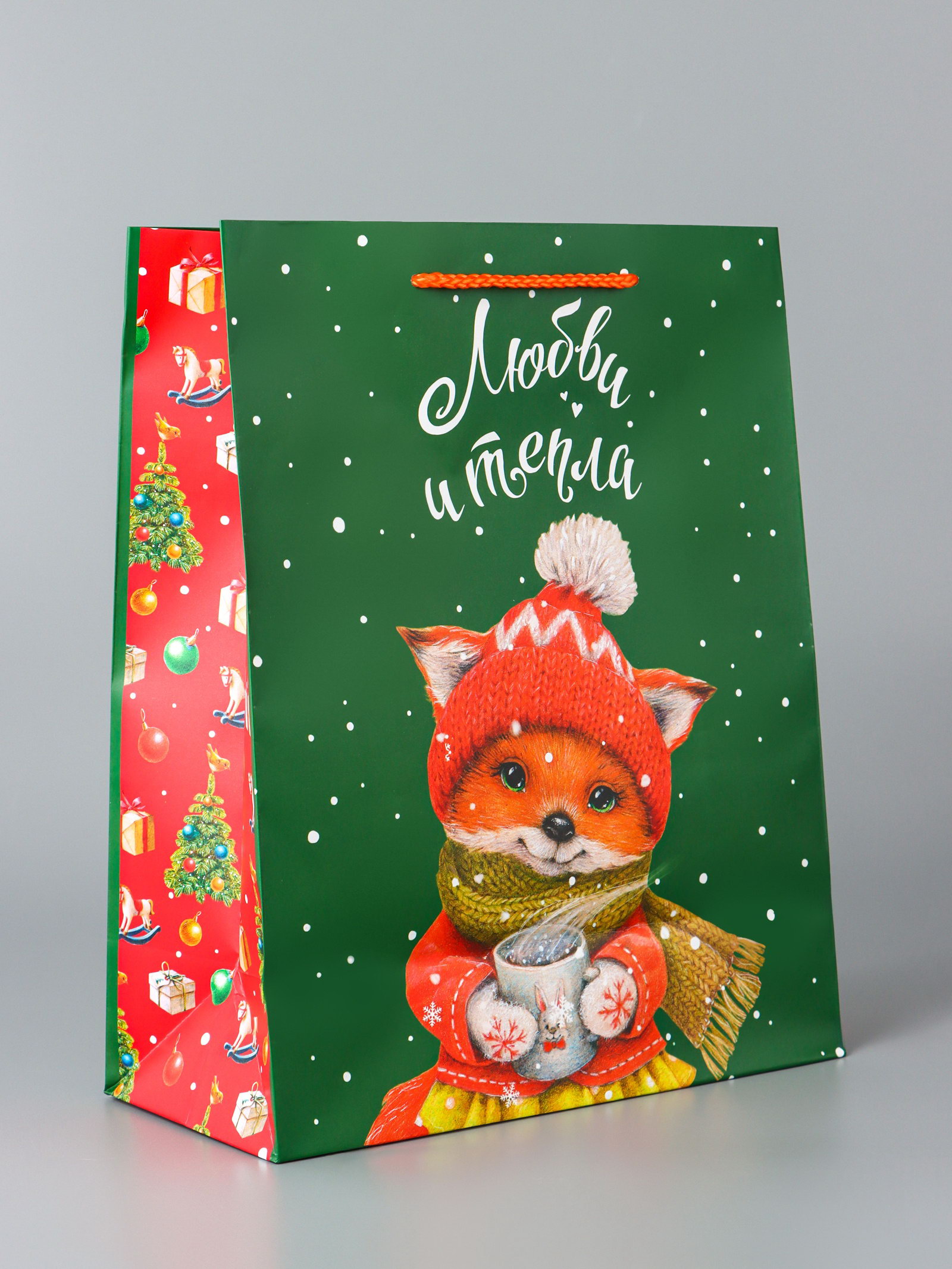 Пакет подарочный новогодний ламинированный "Лисёнок", 26x32x12 см, Китай