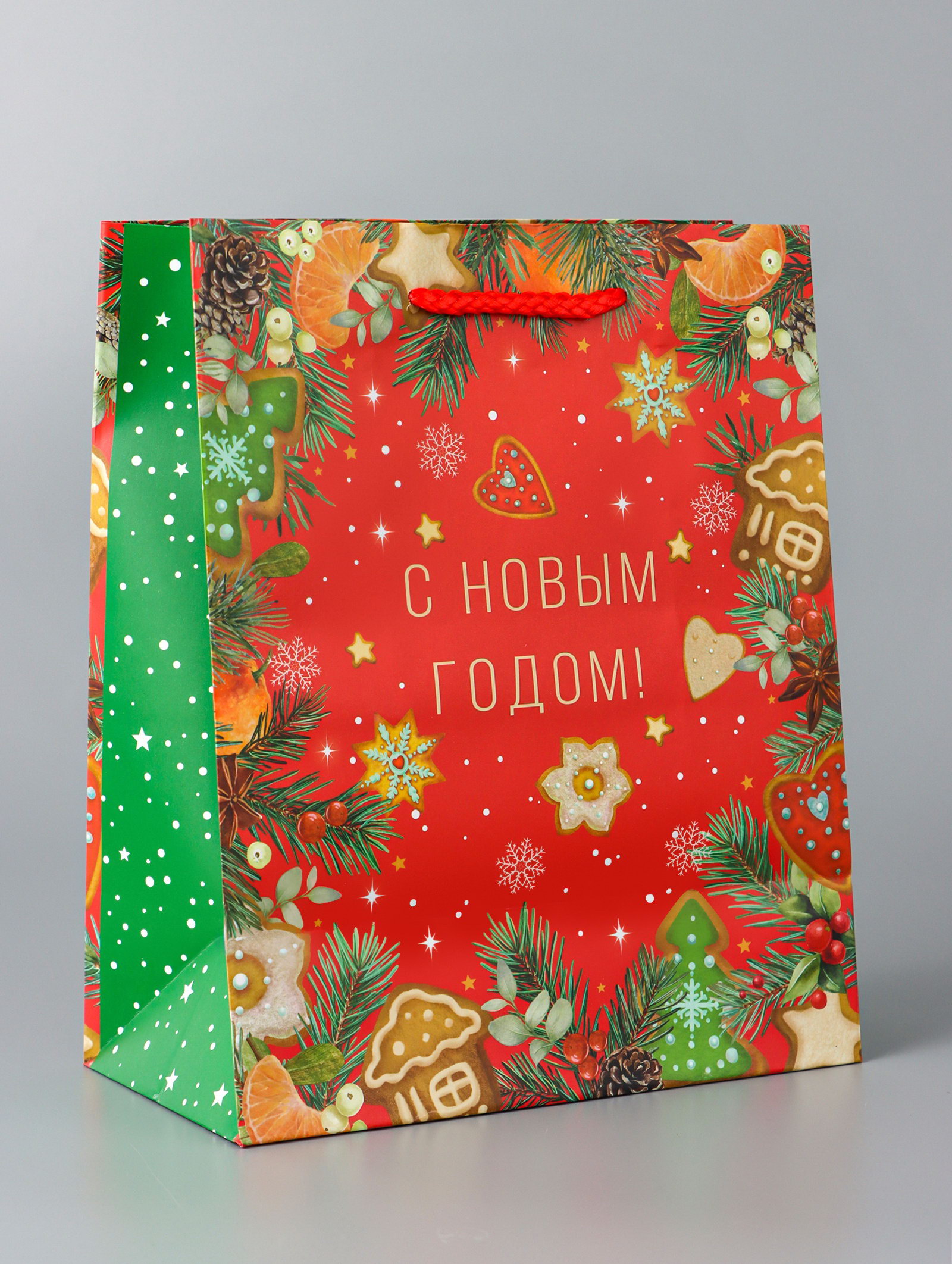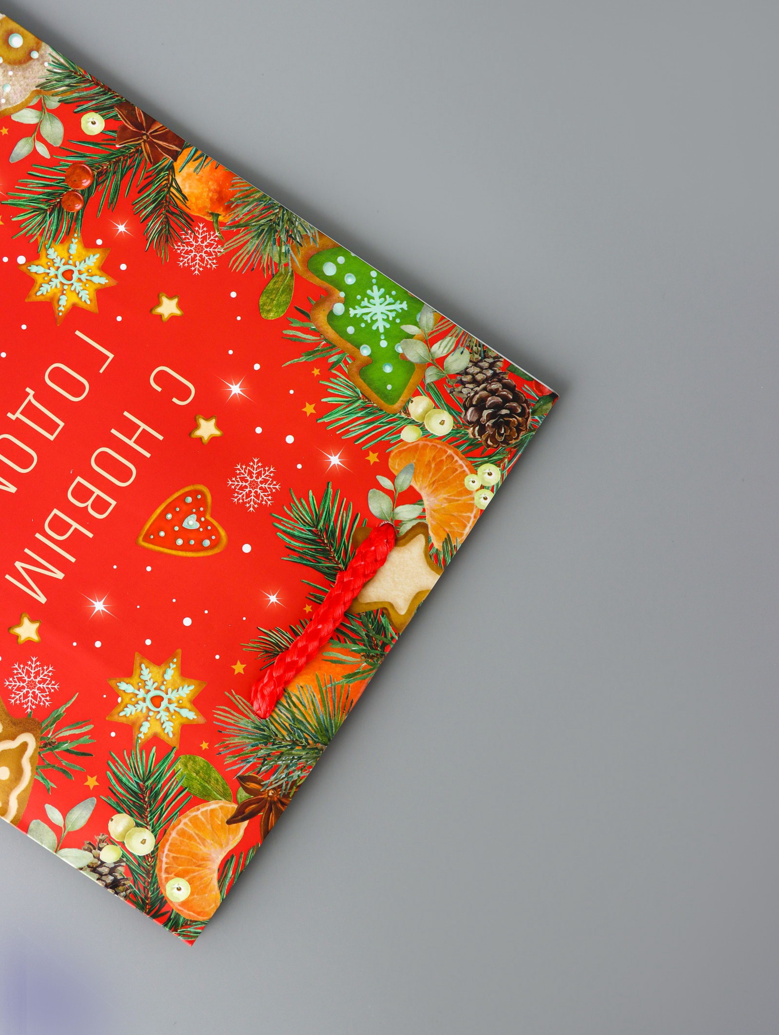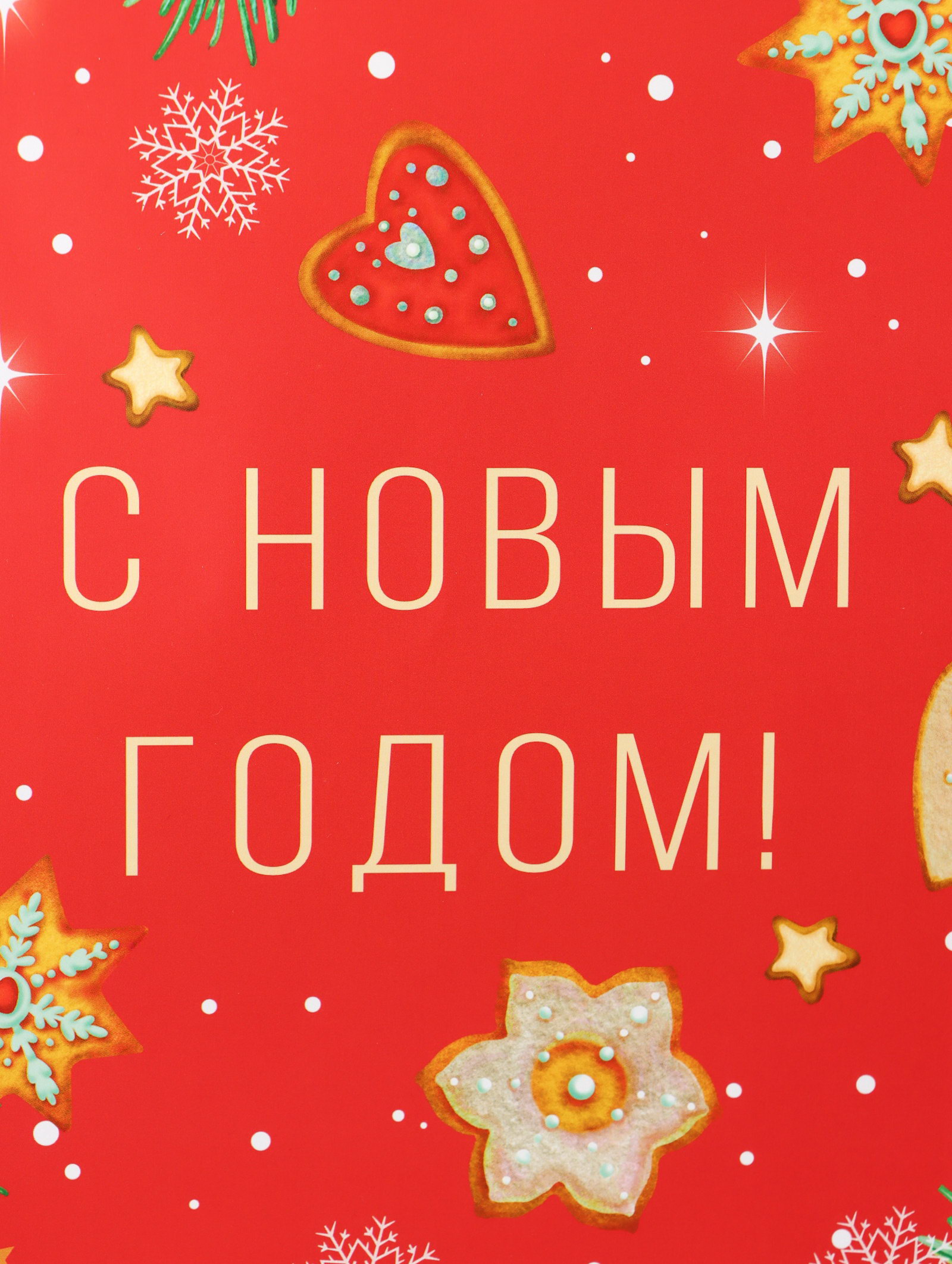 Пакет подарочный новогодний ламинированный "С новым годом!", 18x22.3x10 см, Китай