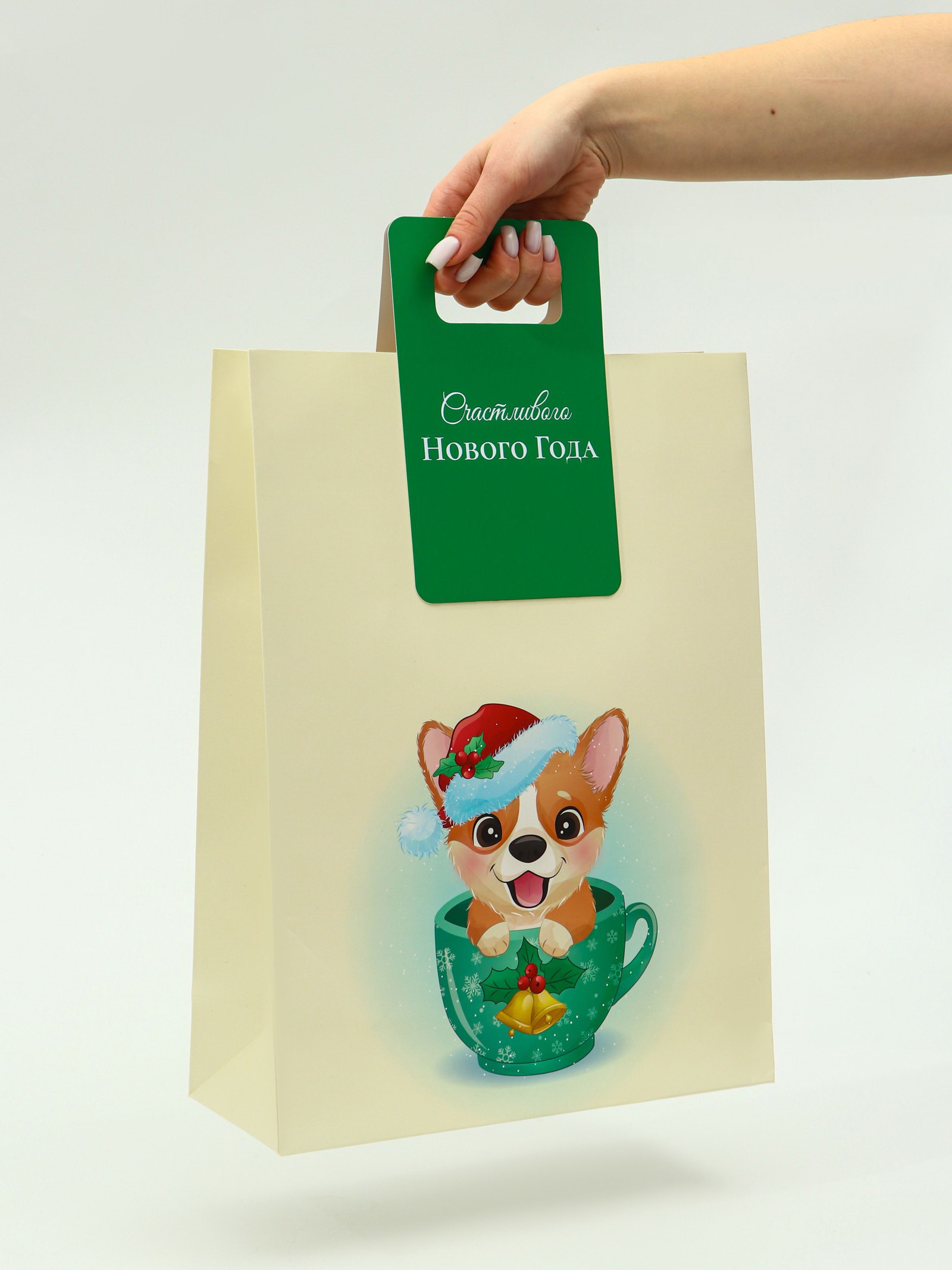 Пакет подарочный новогодний с вырубной ручкой "Корги" 30x40x12 см, 40x30x12 см., UPAK LAND, Китай