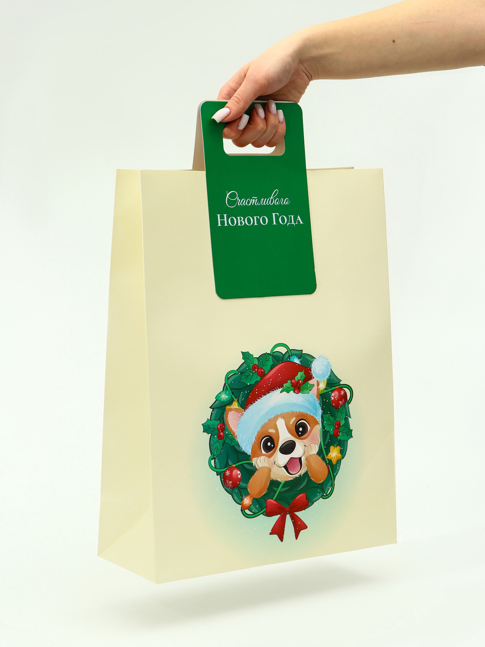 Пакет подарочный новогодний с вырубной ручкой "Новогодний корги" 30x40x12 см, 40x30x12 см., UPAK LAND, Китай