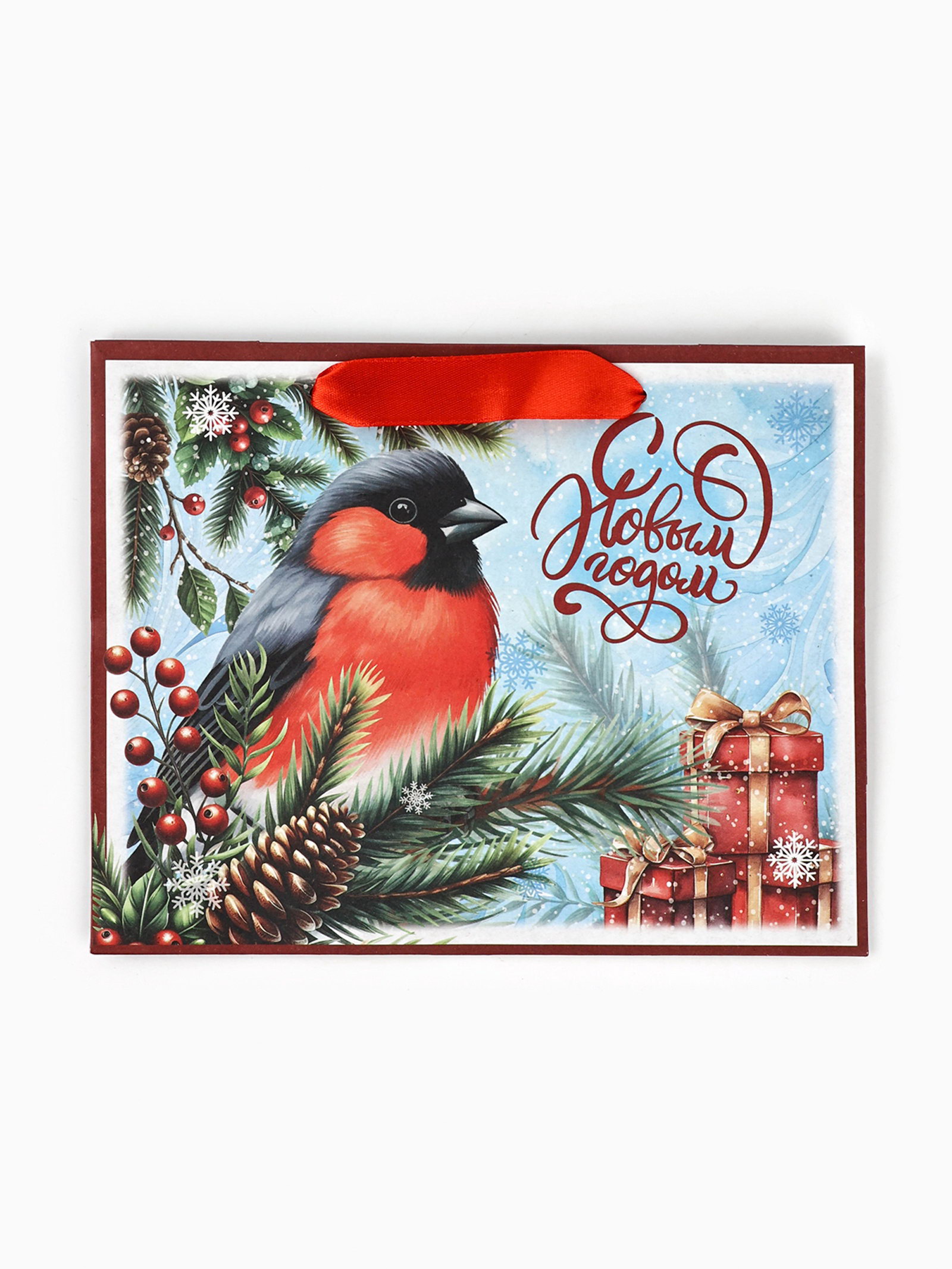 Пакет подарочный крафтовый, "С Новым Годом", 23x18x10 см, 11x24x20 см., Дарите Счастье, Китай