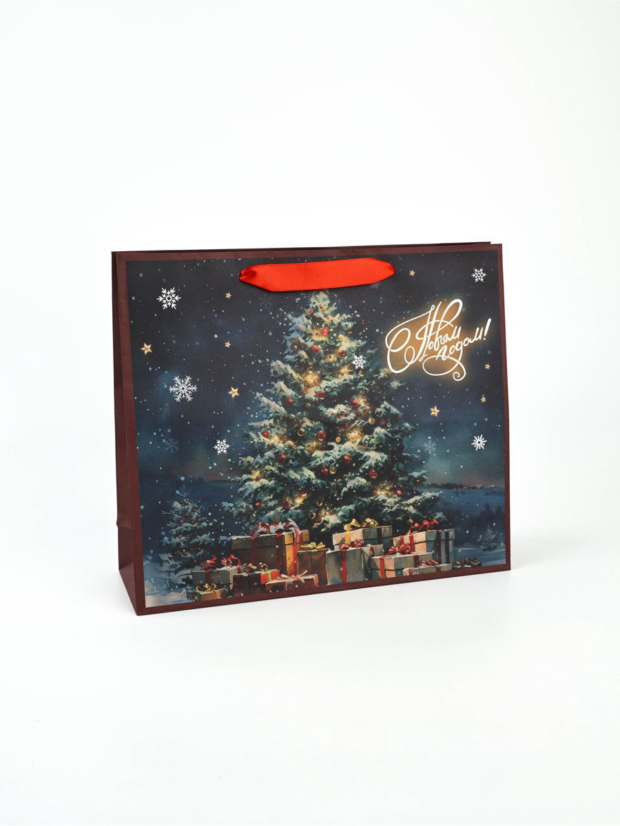 Пакет подарочный новогодний бумажный "Ёлка", 31x26x11 см, 11x31x26 см., Дарите Счастье, Китай