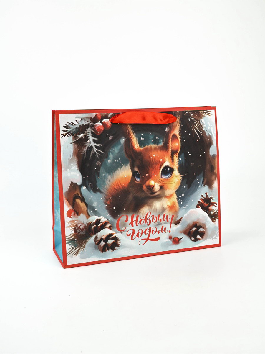 Пакет подарочный новогодний бумажный "С Новым Годом", 31x26x11 см, 11x31x26 см., Дарите Счастье, Китай