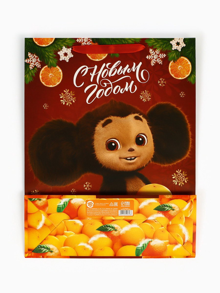 Пакет подарочный новогодний "С Новым годом!", 31x40x11.5 см, упаковка, Чебурашка, 11.5x31x40 см., ЧЕБУРАШКА, Китай