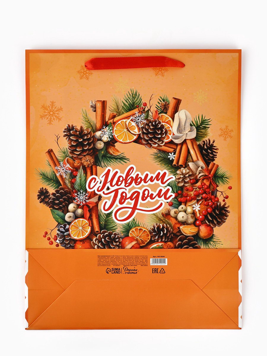 Пакет подарочный новогодний ламинированный "С Новым годом", L 31x40x11.5 см, 31x40x11.5 см., Дарите Счастье, Китай