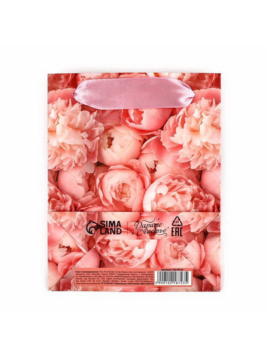 Пакет ламинированный двухсторонний "Пионы", с тишью и открыткой, S, 12x15x5.5, 15x12x5.5 см., Дарите Счастье, Китай