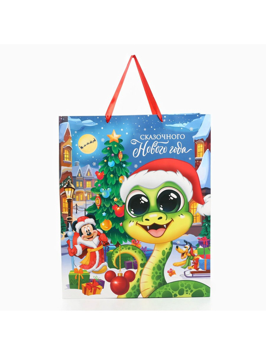 Пакет подарочный новогодний "Счастливого Нового года" 40x49x19 см, упаковка, Микки Маус, 19x40x49 см., Disney, Китай