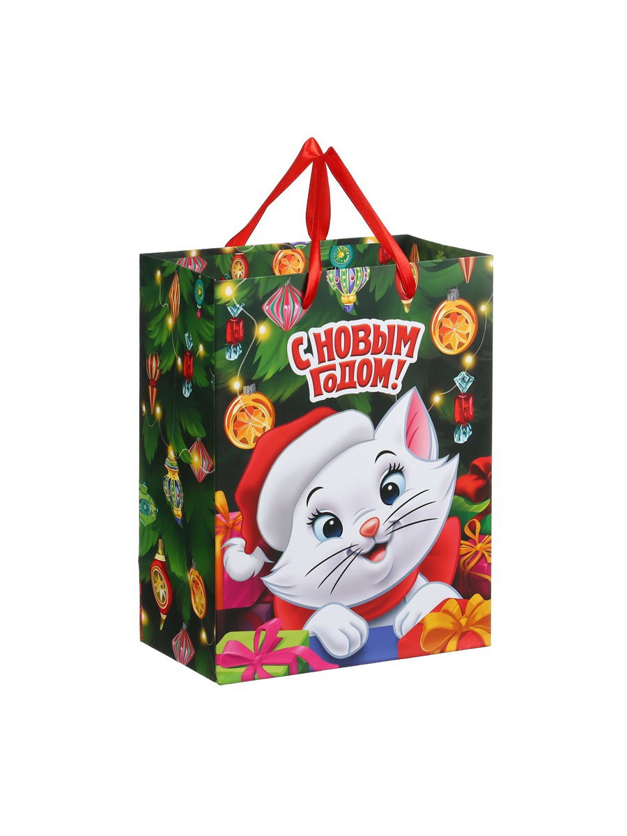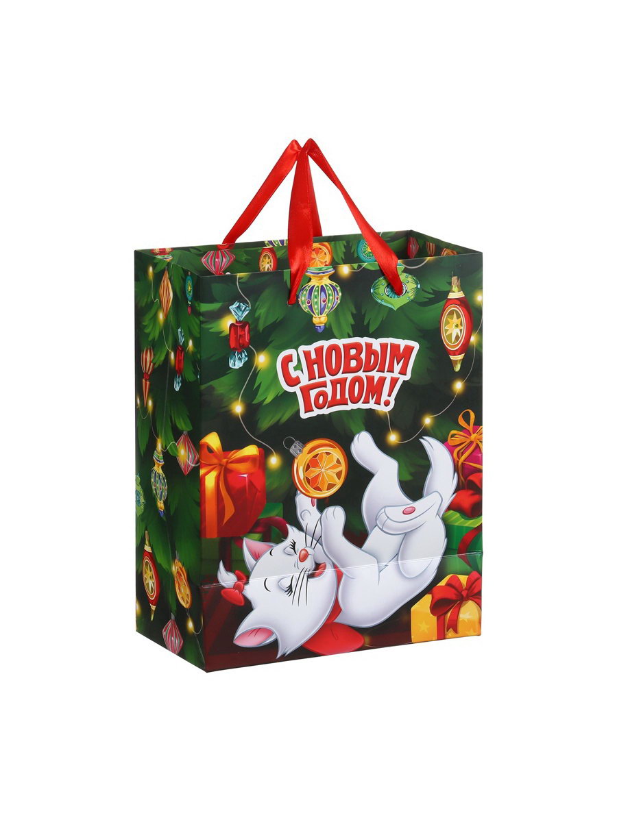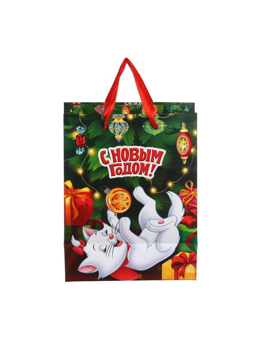 Пакет подарочный новогодний "С Новым годом", 18x23x11.5 см, упаковка, Коты Аристократы, 11.5x18x23 см., Disney, Китай