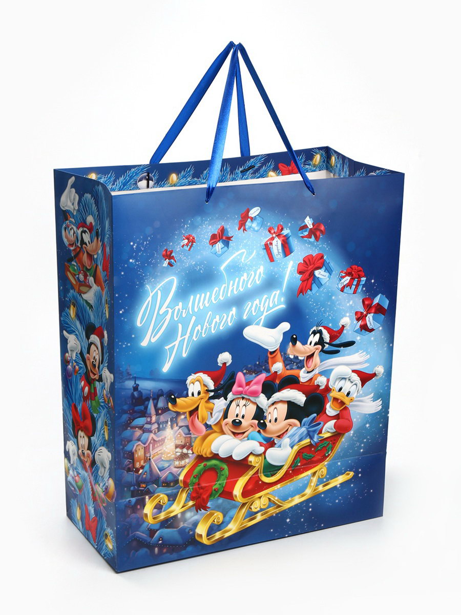 Пакет подарочный новогодний ламинированный "Волшебного Нового года", 40x49x19 см, Микки Маус, 19x40x49 см., Disney, Китай