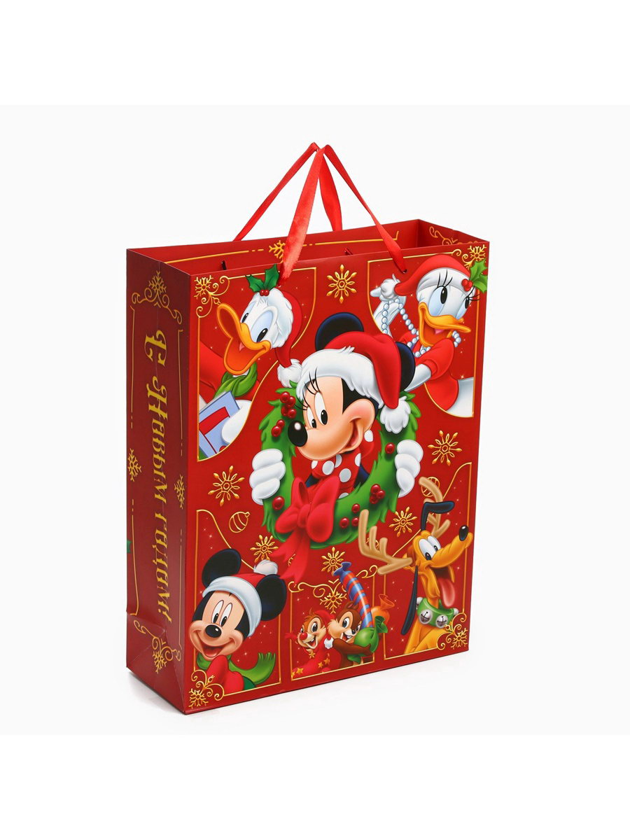 Пакет подарочный новогодний "С Новым годом", 31x40x11.5 см, упаковка, Микки Маус, 11.5x31x40 см., Disney, Китай