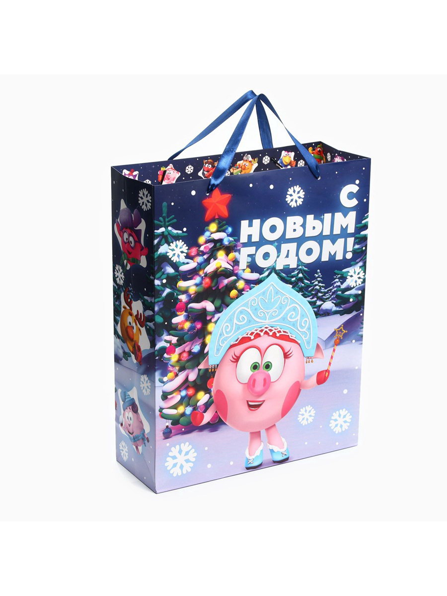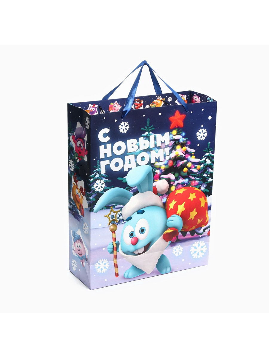 Пакет подарочный новогодний "С Новым годом", 31x40x11.5 см, 11.5x31x40 см., Смешарики, Китай