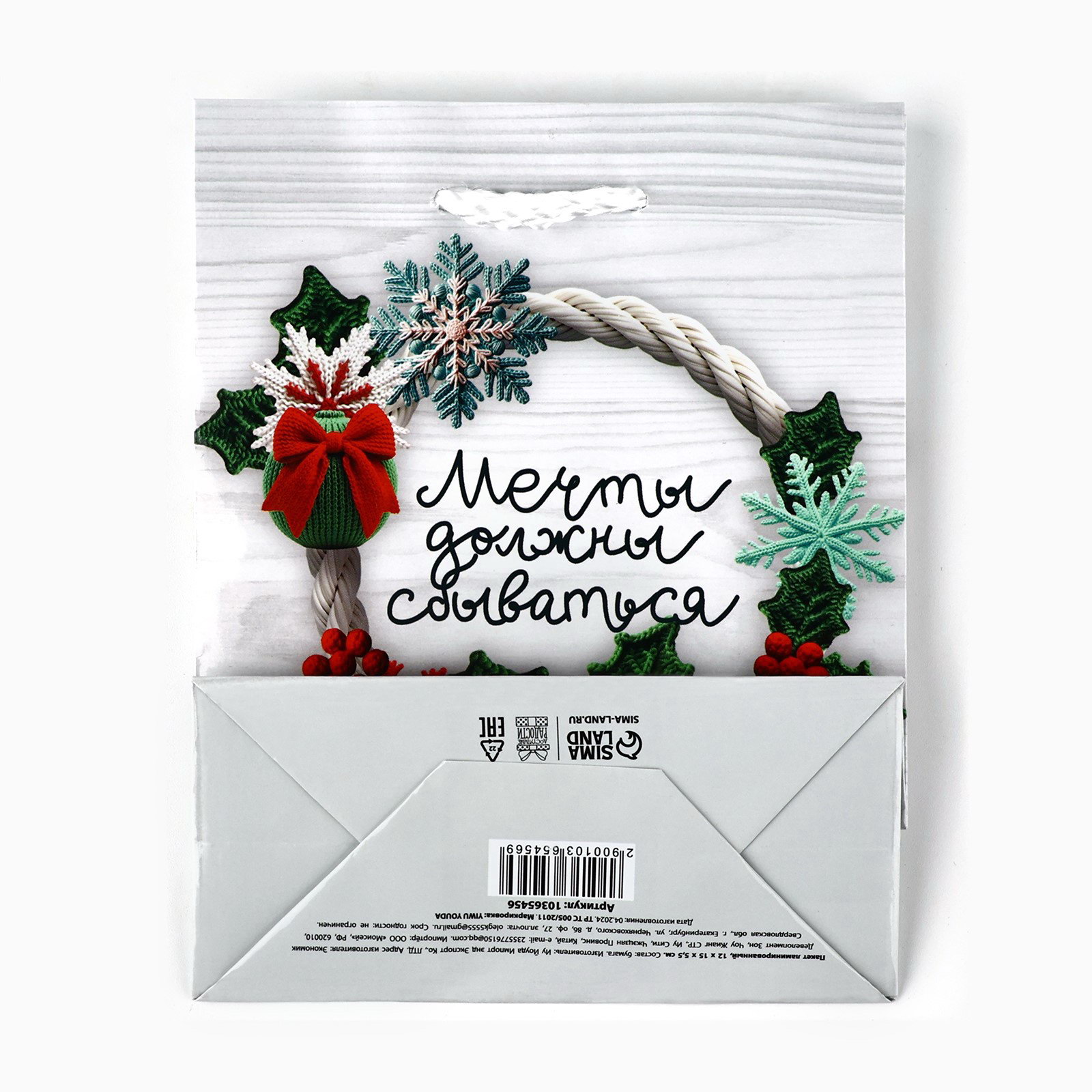 Пакет подарочный новогодний ламинированный "Мечты сбываются", S 12x15x5.5 см, Доступные Радости, Китай