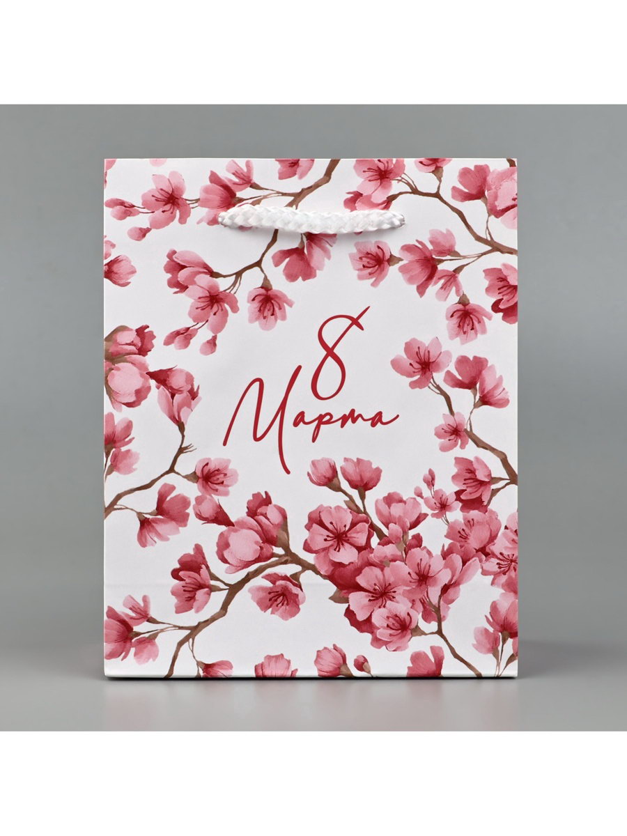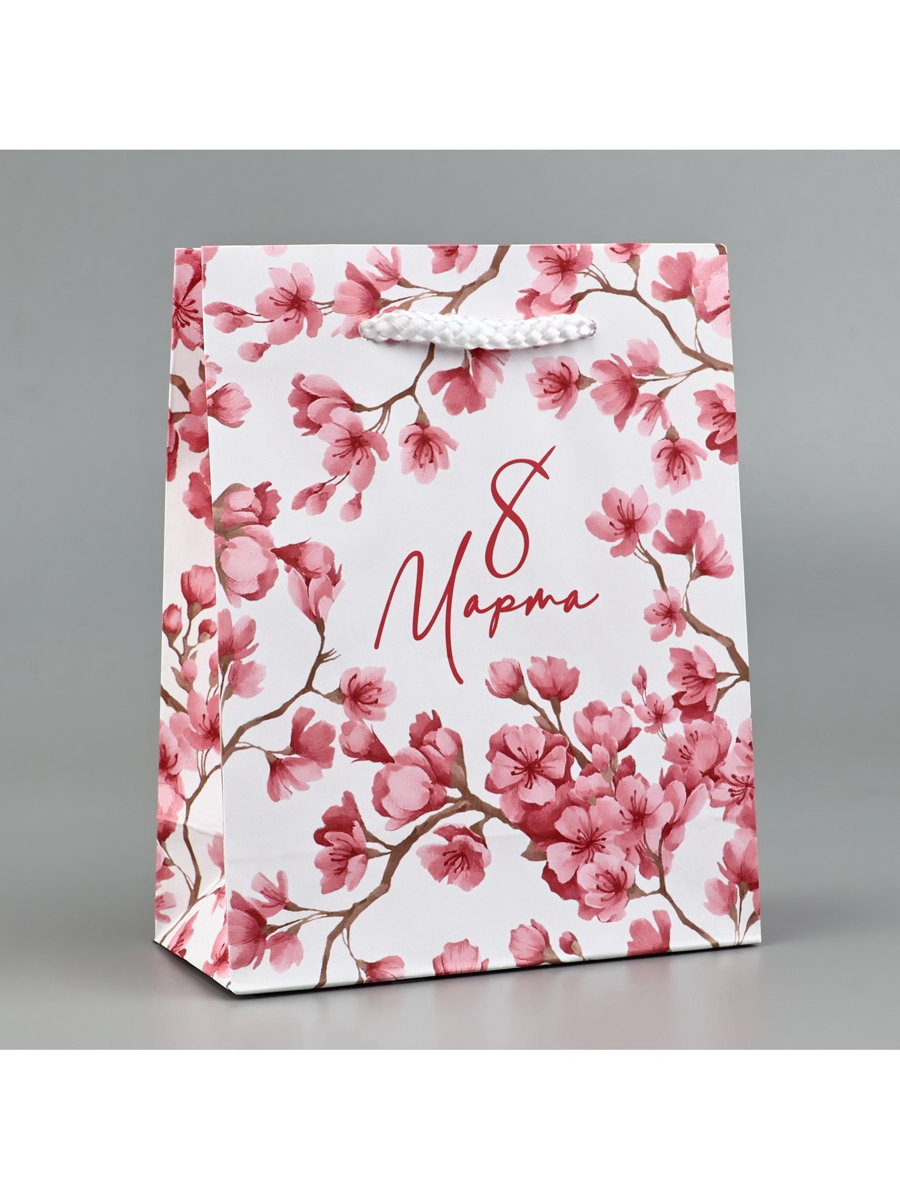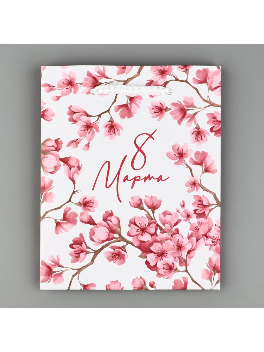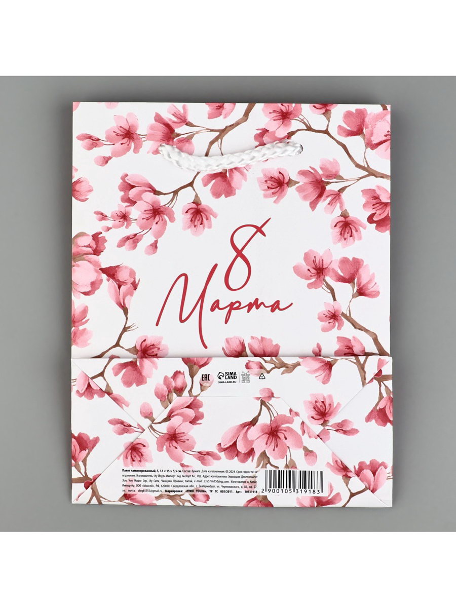 Пакет подарочный ламинированный "8 марта", S 12 x 15 x 5.5 см, 5.5x12x15 см., Доступные Радости, Китай