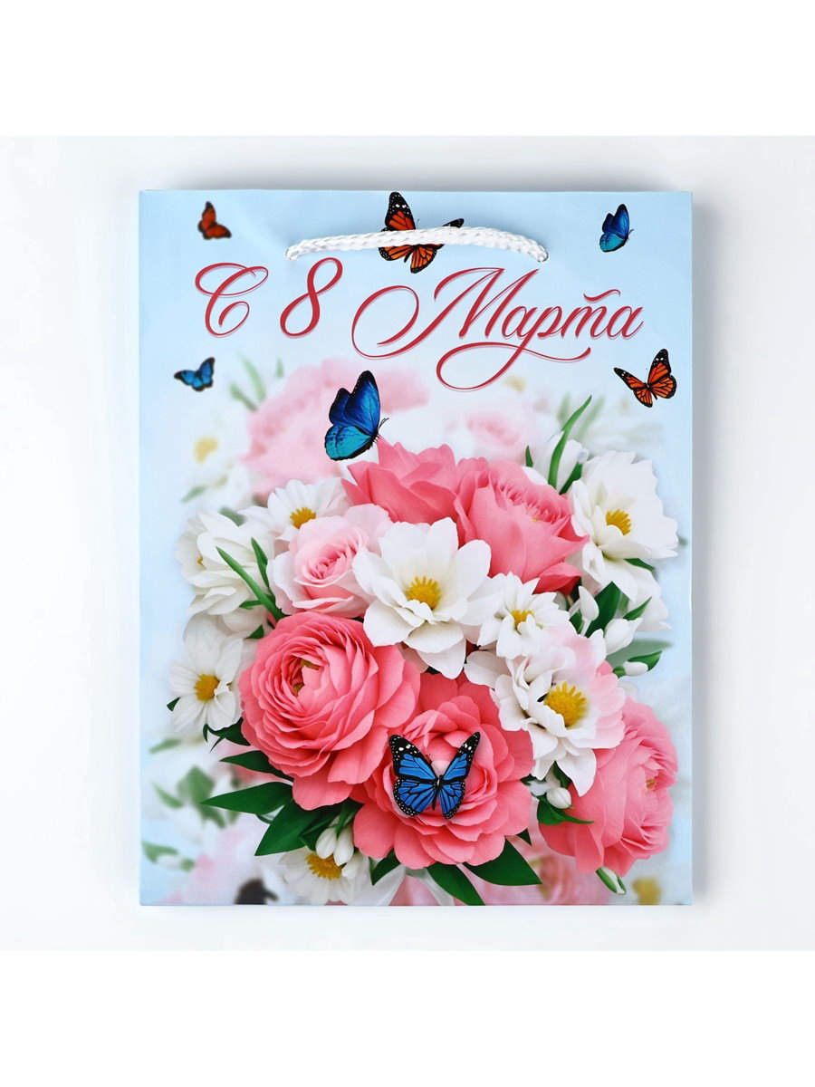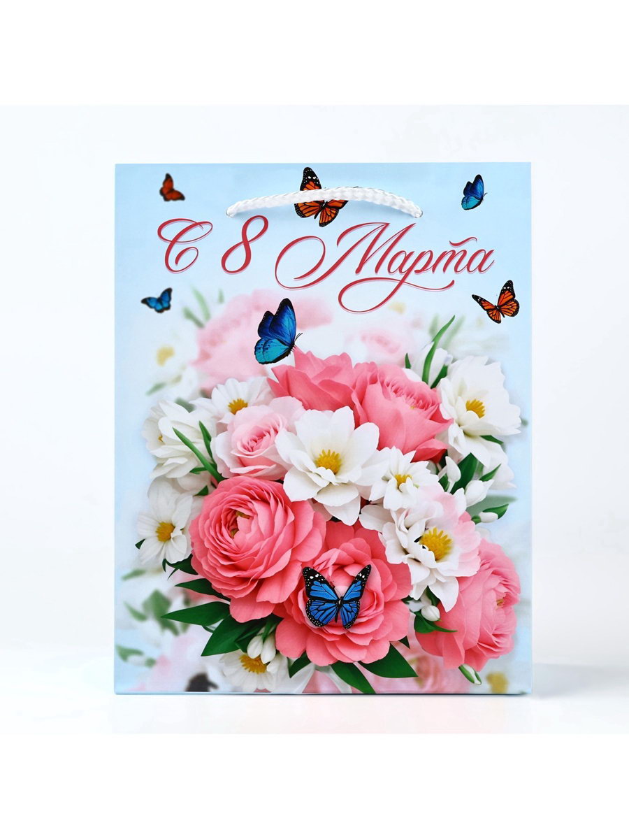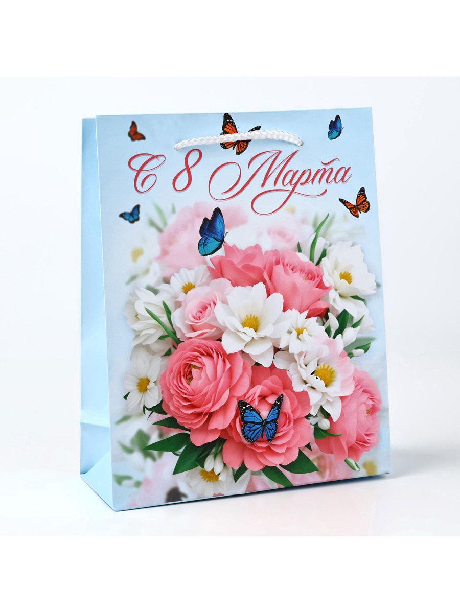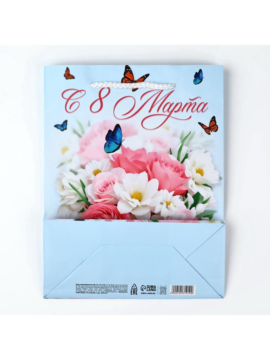 Пакет подарочный ламинированный "С 8 марта", MS 18 x 23 x 8 см, 8x18x23 см., Доступные Радости, Китай