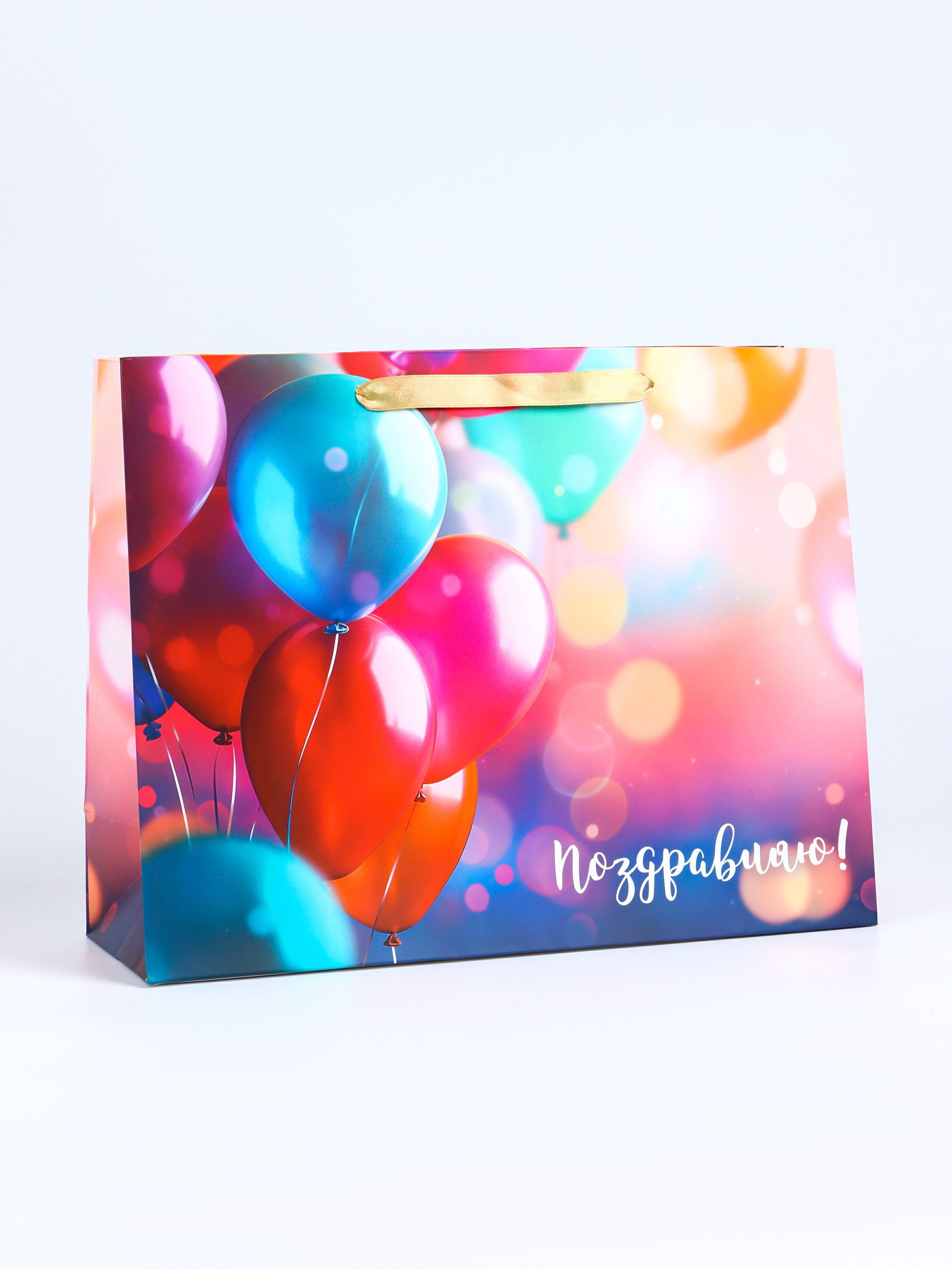 Пакет подарочный ламинированный горизонтальный "Поздравляю", L 40 x 31 x 14 см, UPAK LAND, Китай