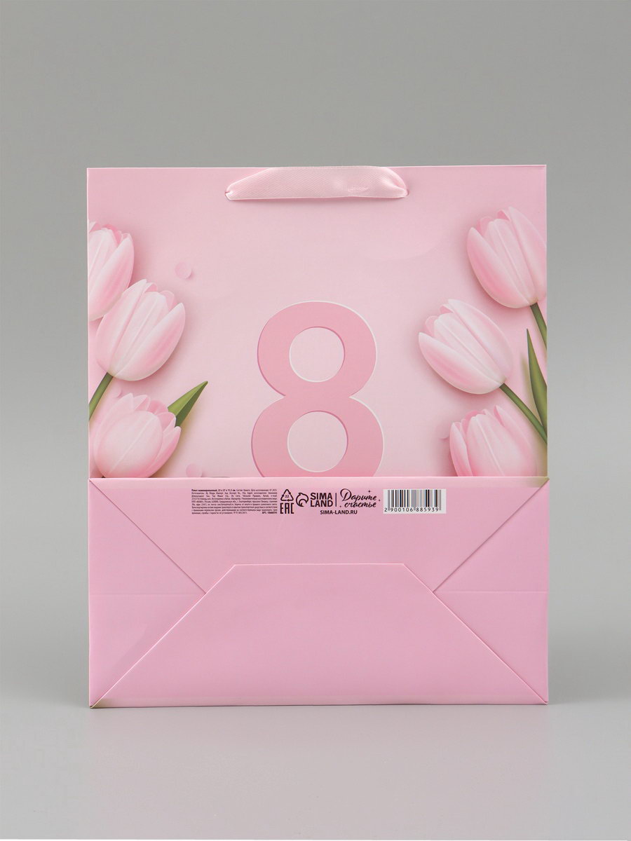 Пакет подарочный вертикальный "8 Марта", ML 23x27x11.5 см, UPAK LAND, Китай