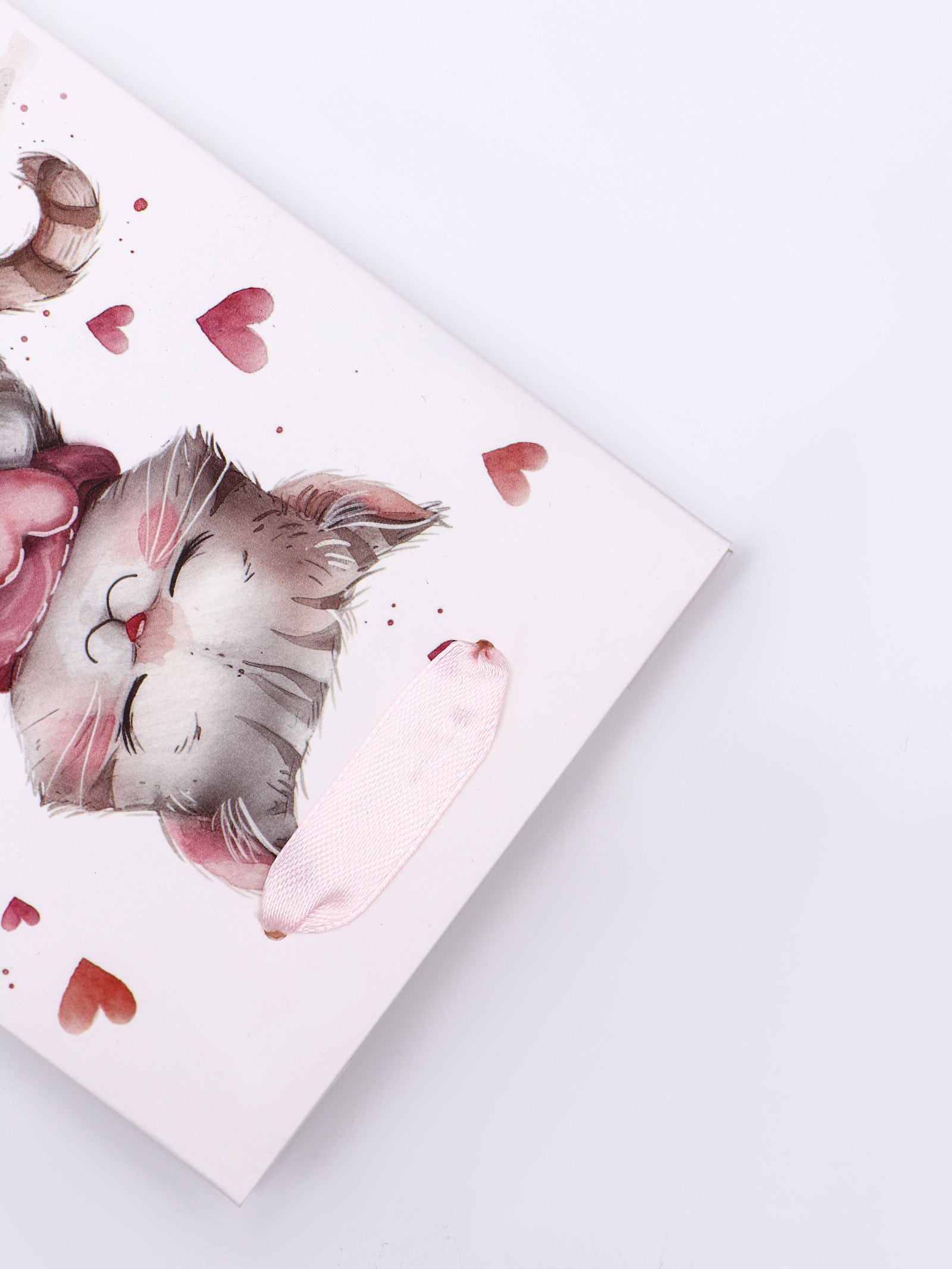 Пакет подарочный вертикальный "Сердечный котик", S 12x15x5.5 см, UPAK LAND, Китай