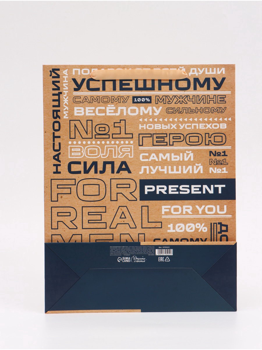 Пакет подарочный вертикальный "Настоящий мужчина", 31x40x14 см, UPAK LAND, Китай
