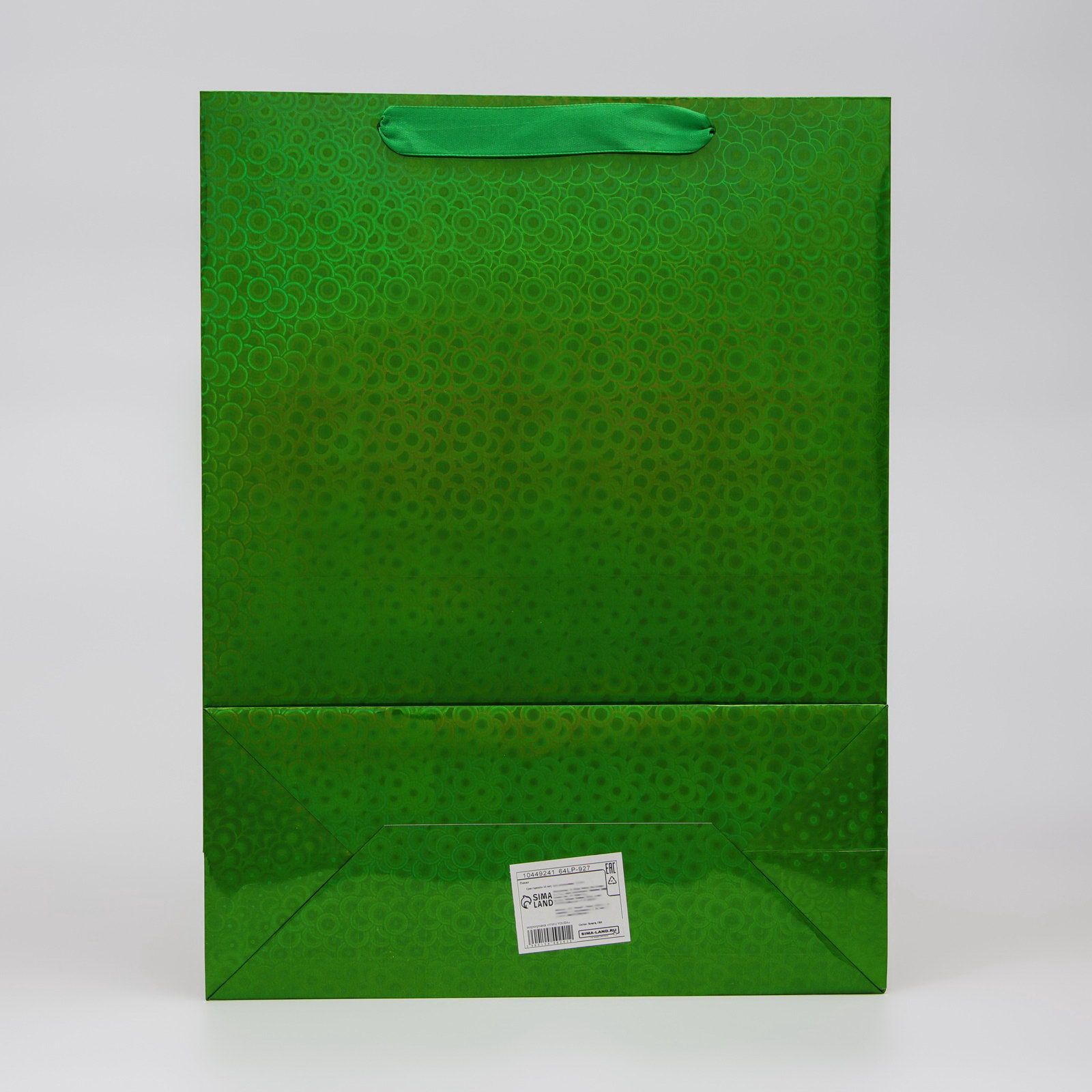 Пакет подарочный голография с окном, "Зеленый", L 40x30x13 см набор 1 шт., UPAK LAND, Китай