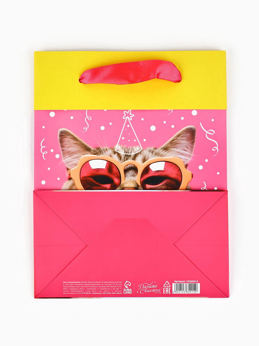 Пакет ламинированный двухсторонний "Котик", MS 18x23x10 см, Дарите Счастье, Китай