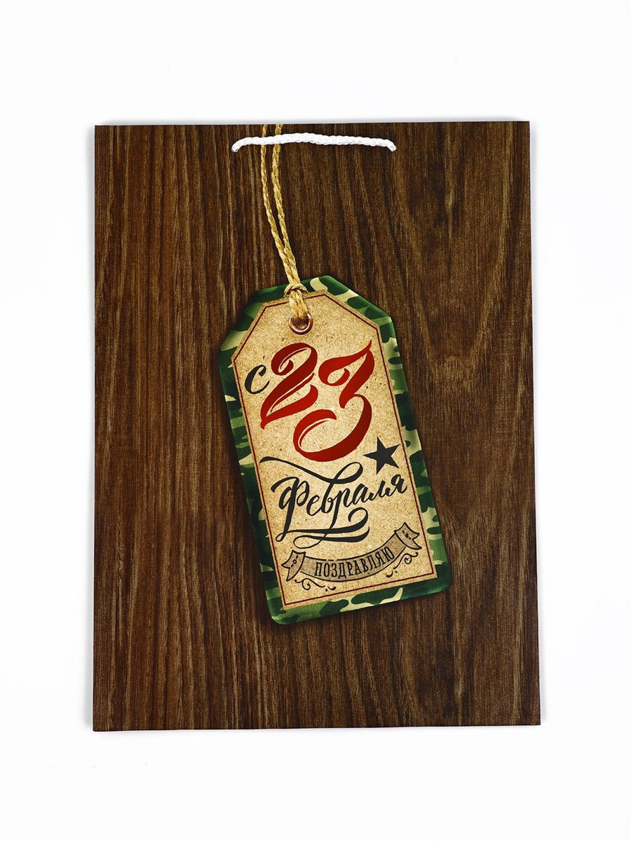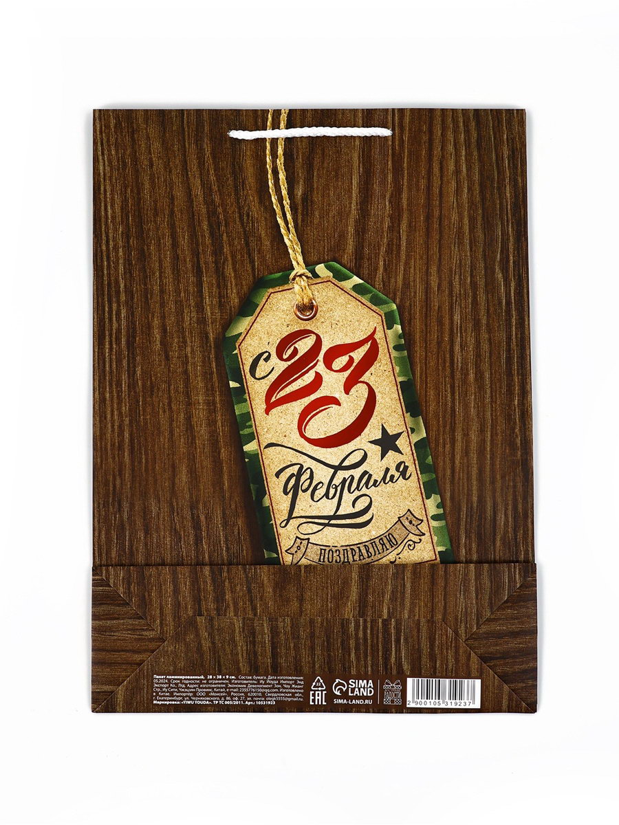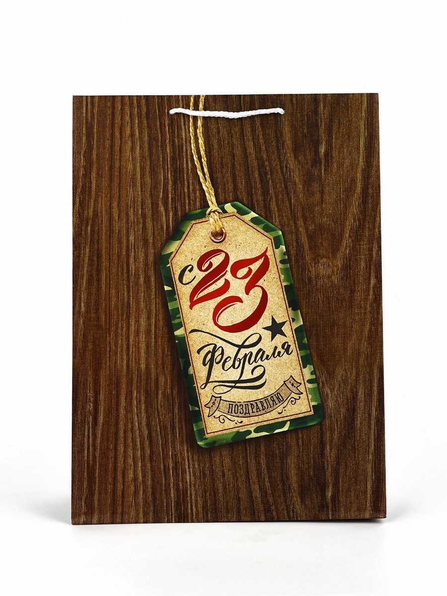 Пакет подарочный ламинированный "С 23 февраля", L 28 x 38 x 9 см, 9x28x38 см., Доступные Радости, Китай