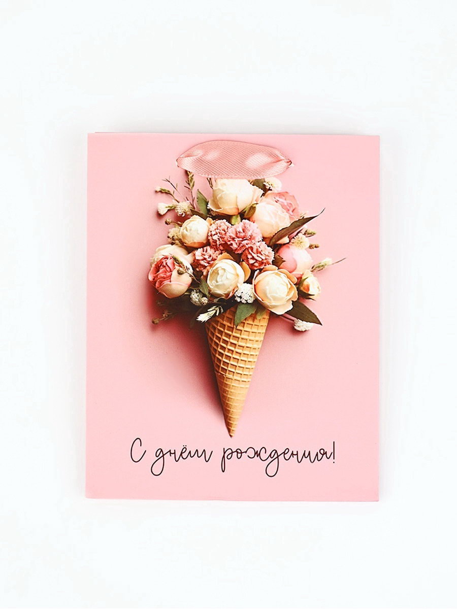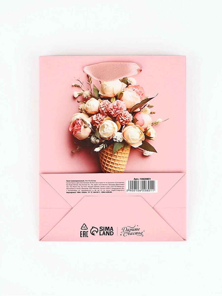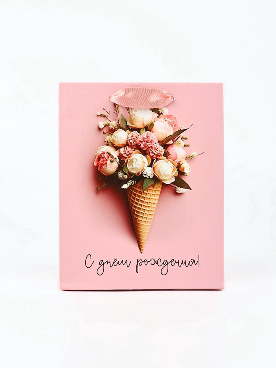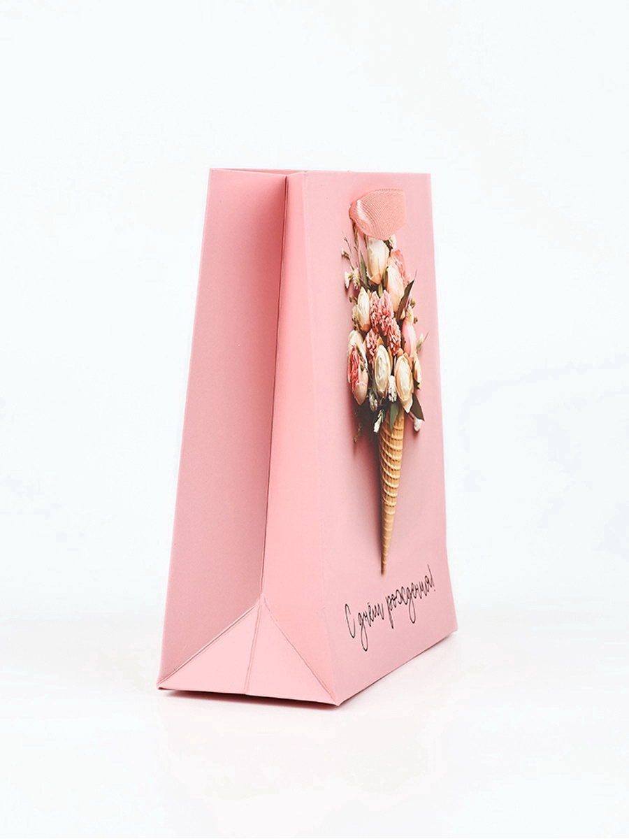 Пакет ламинированный "С Днём рождения", цветы, S 12 x 5.5 x 15 см, 5.5x12x15 см., Дарите Счастье, Китай