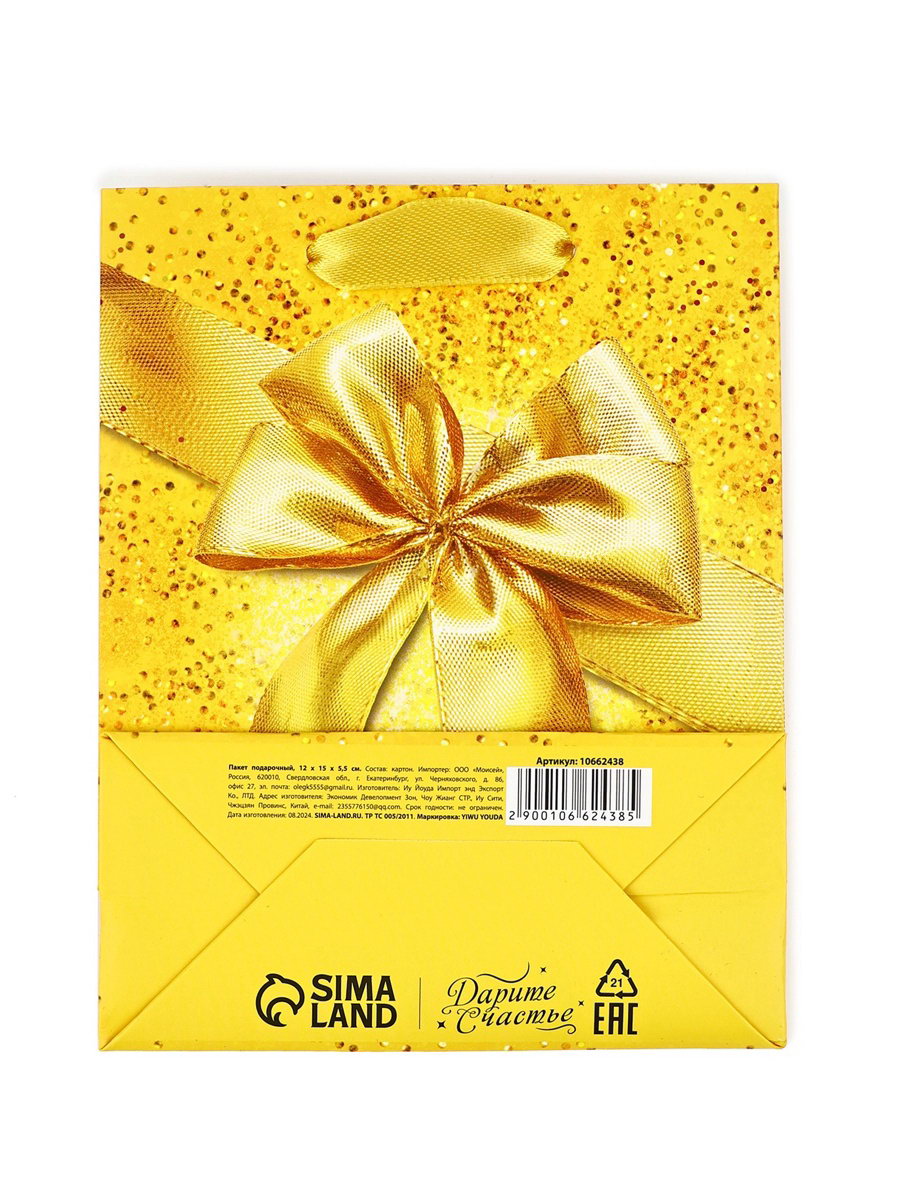 Пакет подарочный, упаковка, "Бант", частичный лак, S 12 x 15 x 5.5 см, 5.5x12x15 см., Дарите Счастье, Китай