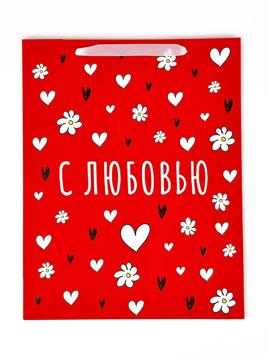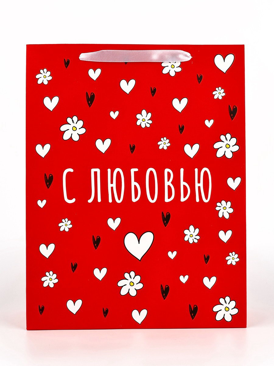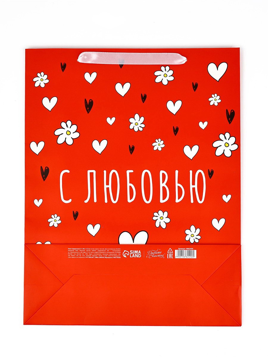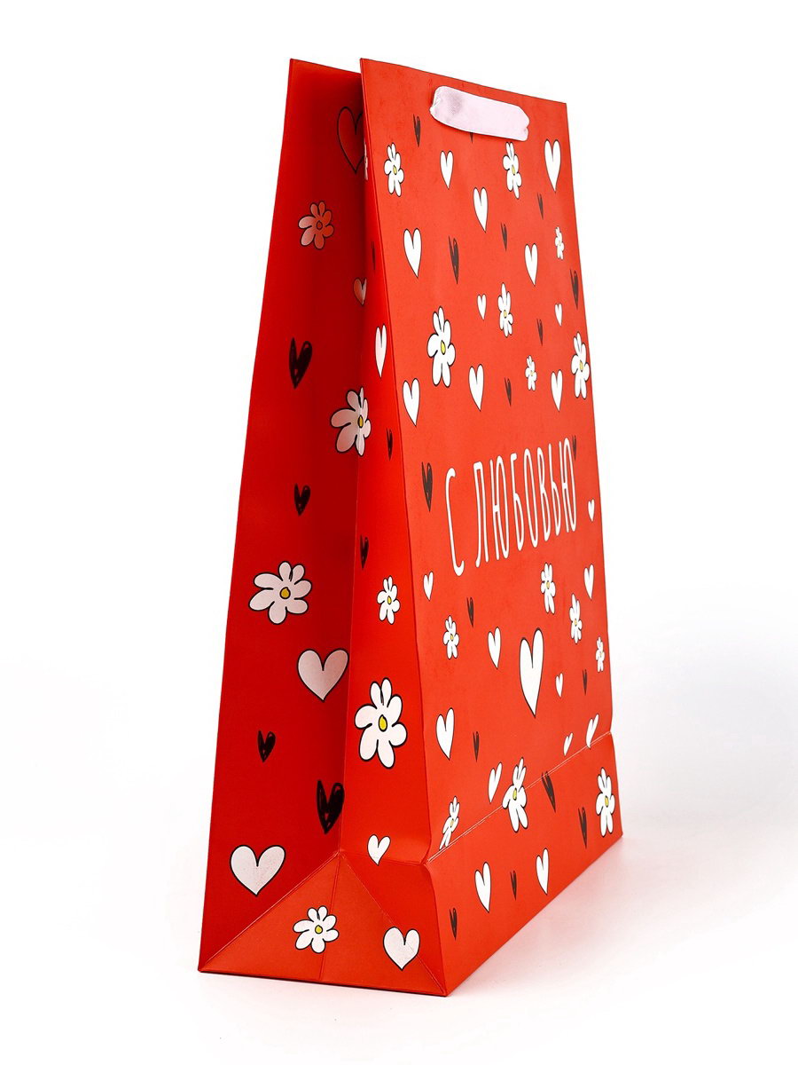 Пакет подарочный бархатный, упаковка, "С любовью", бархат, L 31 x 40 x 11.5 см, 11.5x35x40 см., Дарите Счастье, Китай