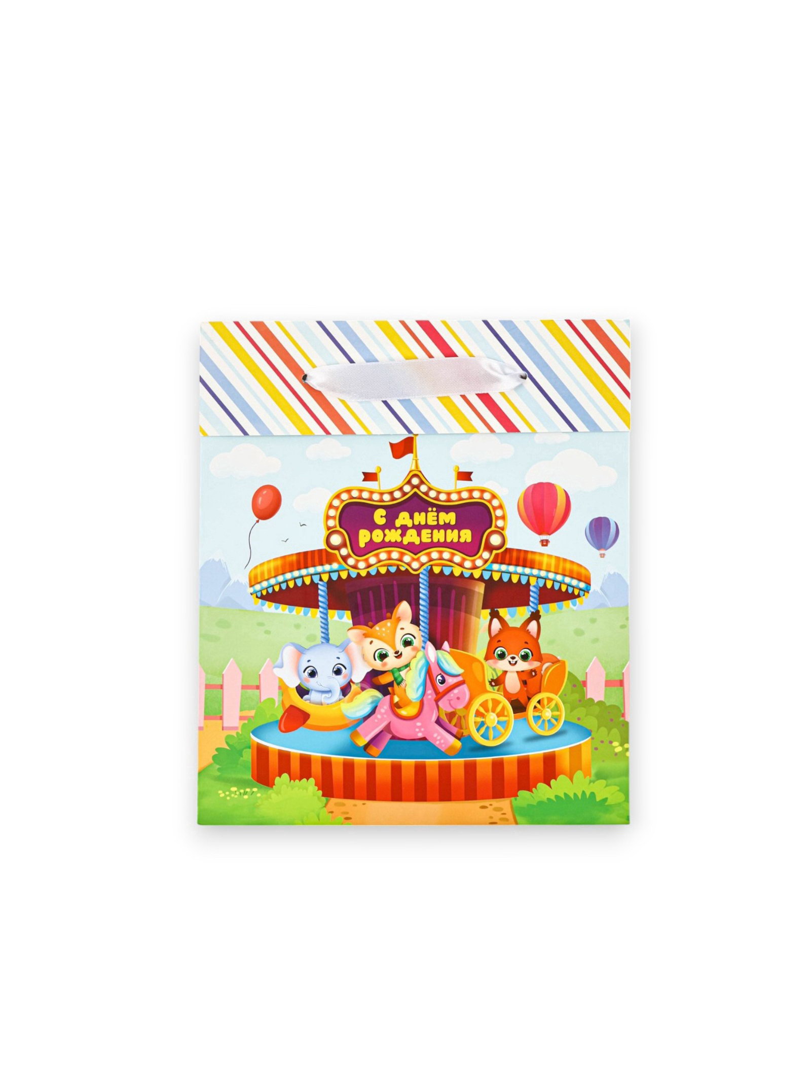 Пакет ламинированный двухсторонний "С Днём рождения", карусель, ML 23 x 27 x 11.5 см, Дарите Счастье, Китай