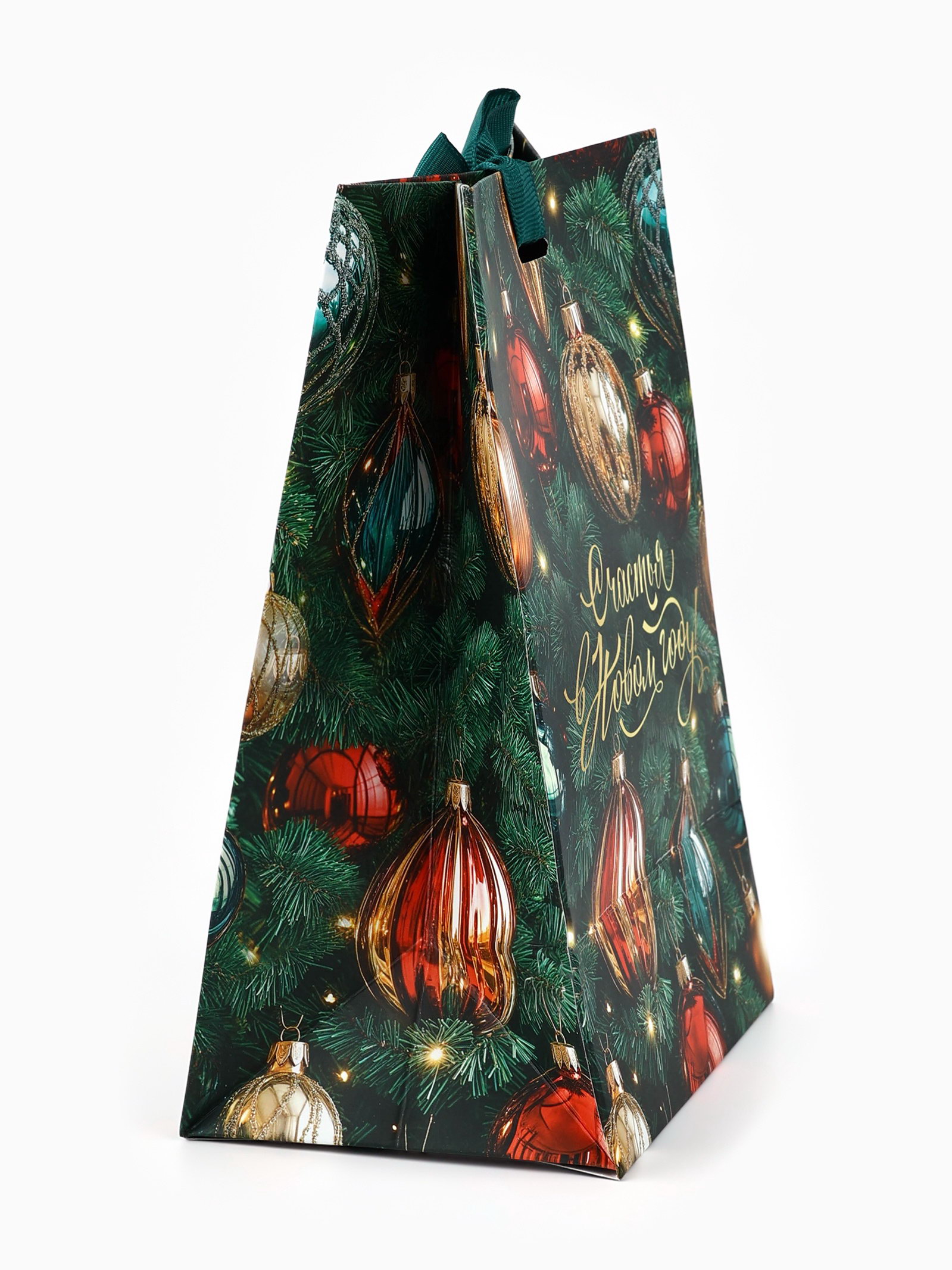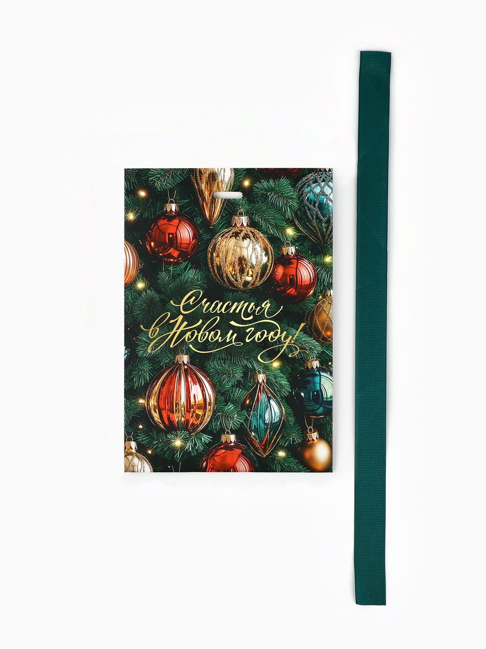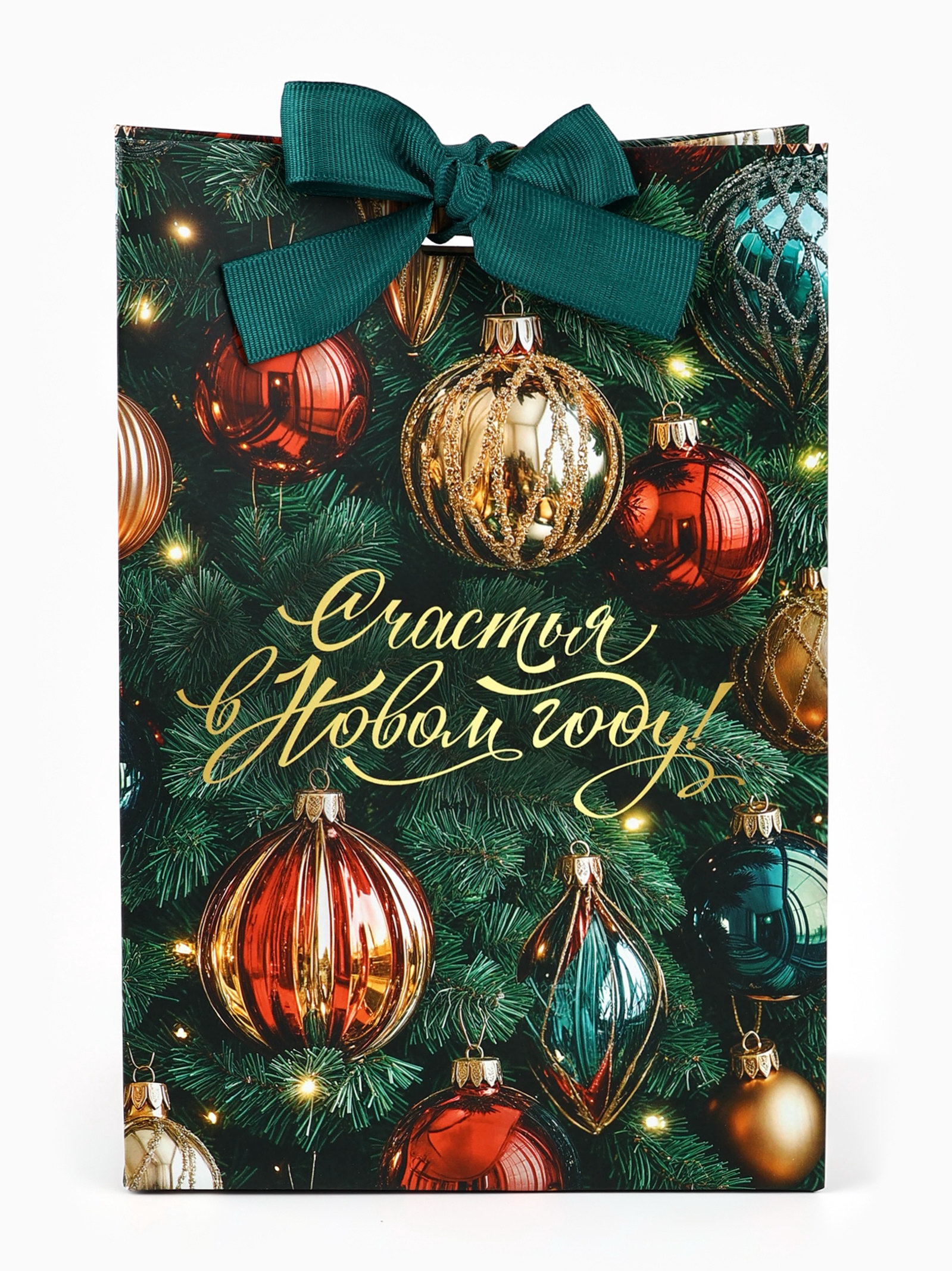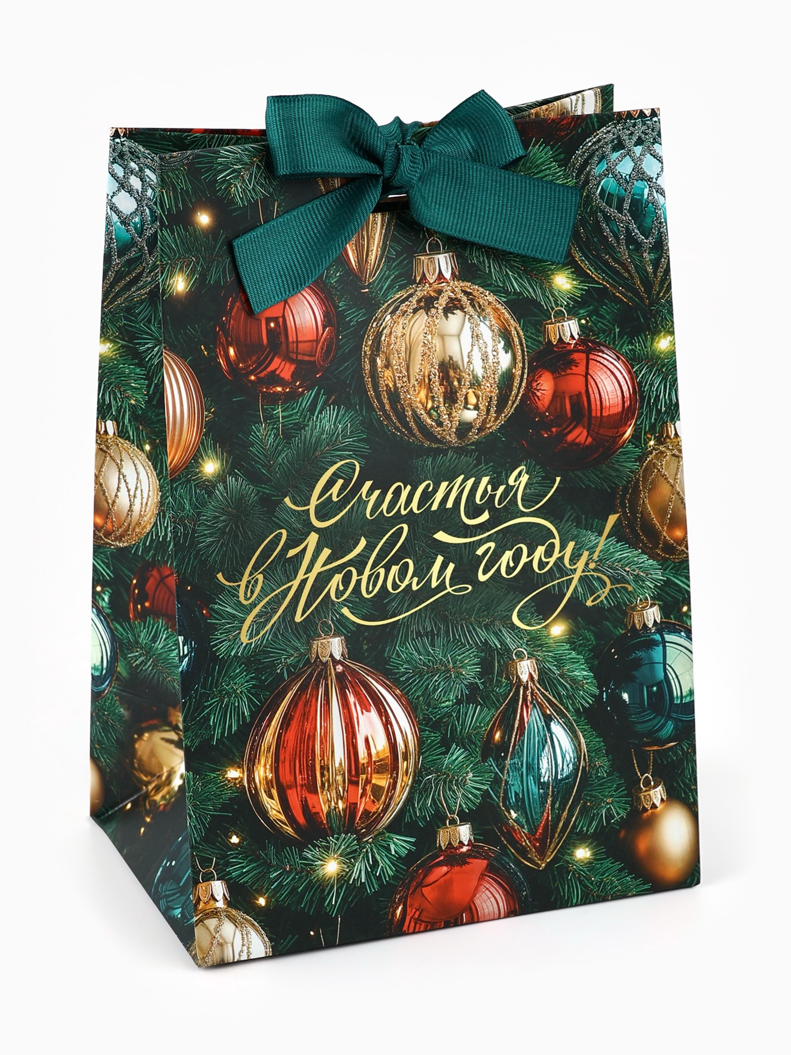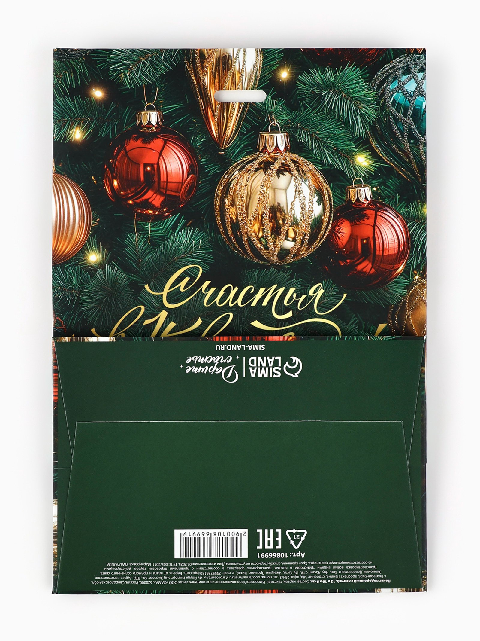 Пакет подарочный новогодний с лентой "Счастья в Новом году", 13x19x9 см, 9x13x19 см., Дарите Счастье, Китай