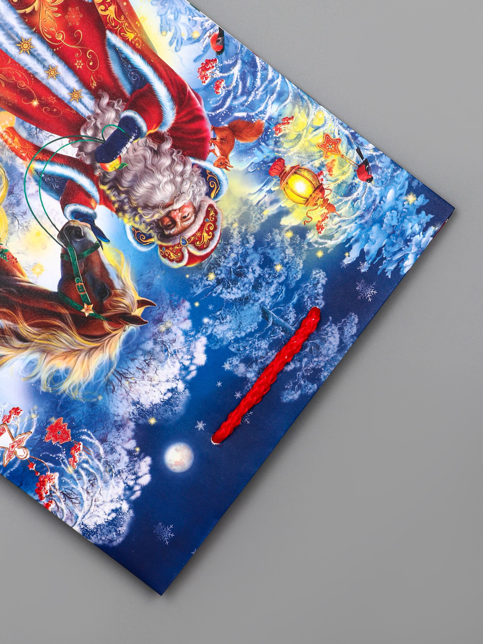 Пакет подарочный новогодний ламинированный, "Дед Мороз с Конём", 18x10x22.3 см, Китай