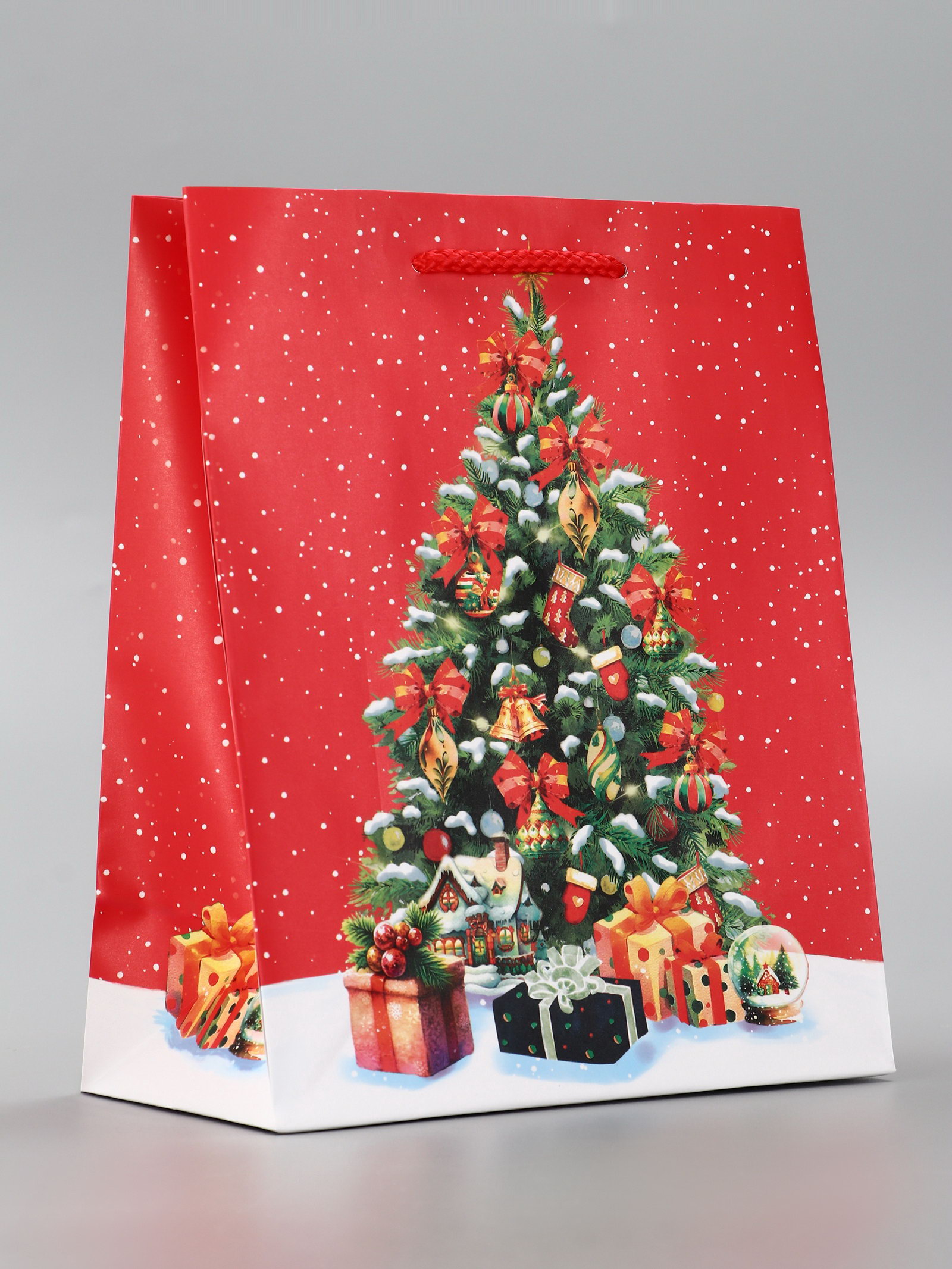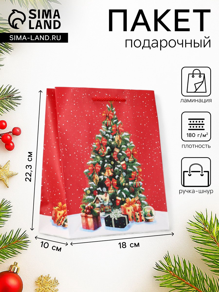 Пакет подарочный новогодний ламинированный, "Новогодняя ёлка", 18x10x22.3 см, Китай