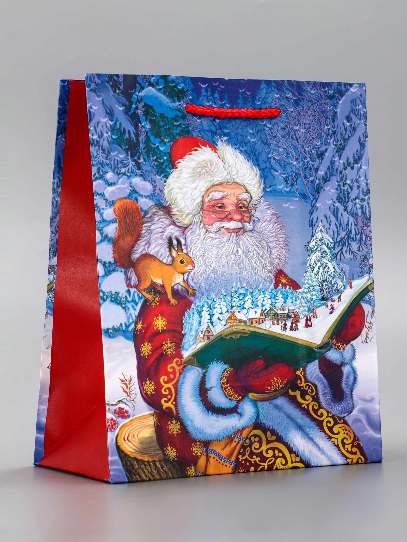 Пакет подарочный новогодний ламинированный, "Дед мороз", 18x10x22.3 см, Китай