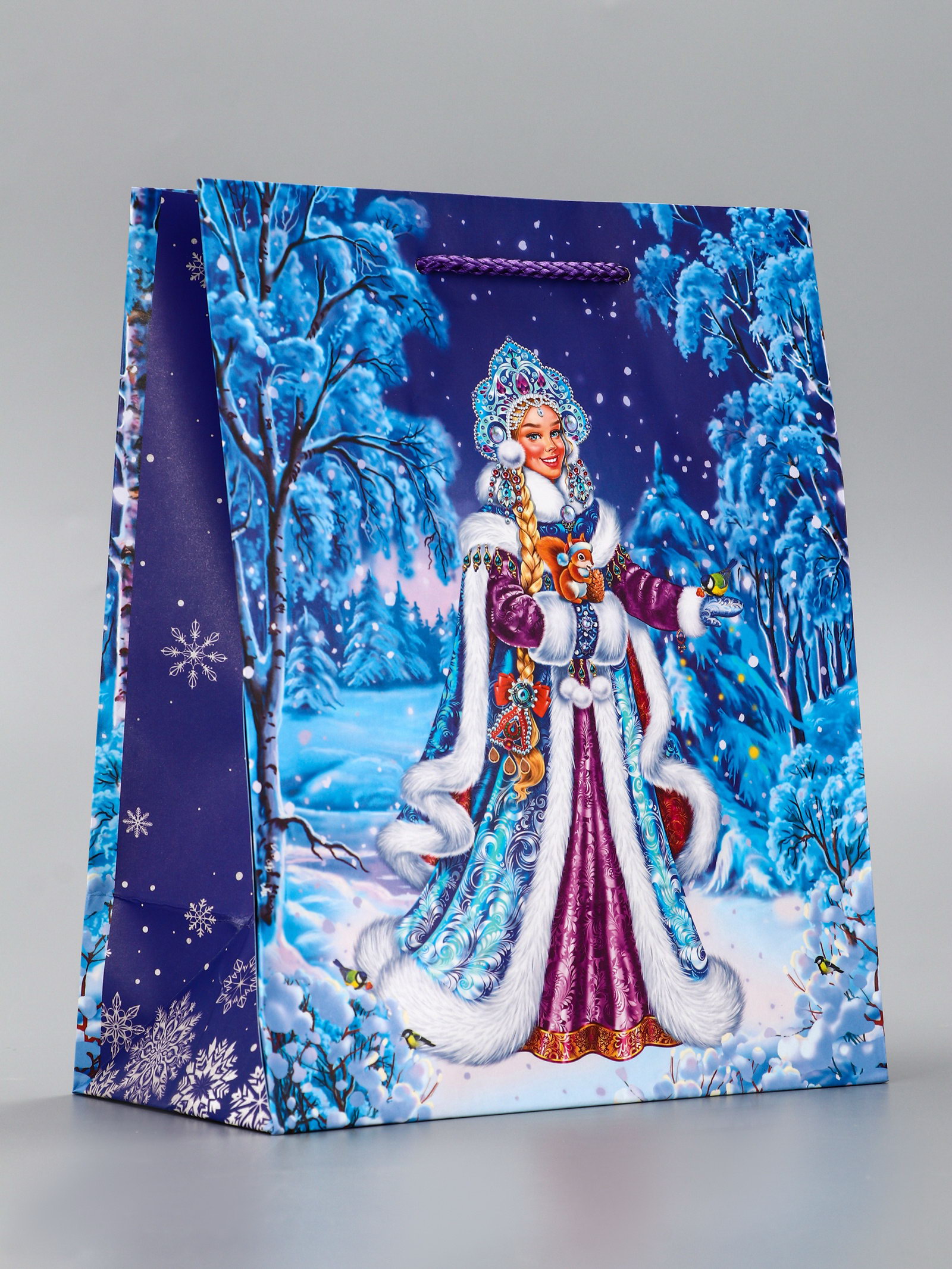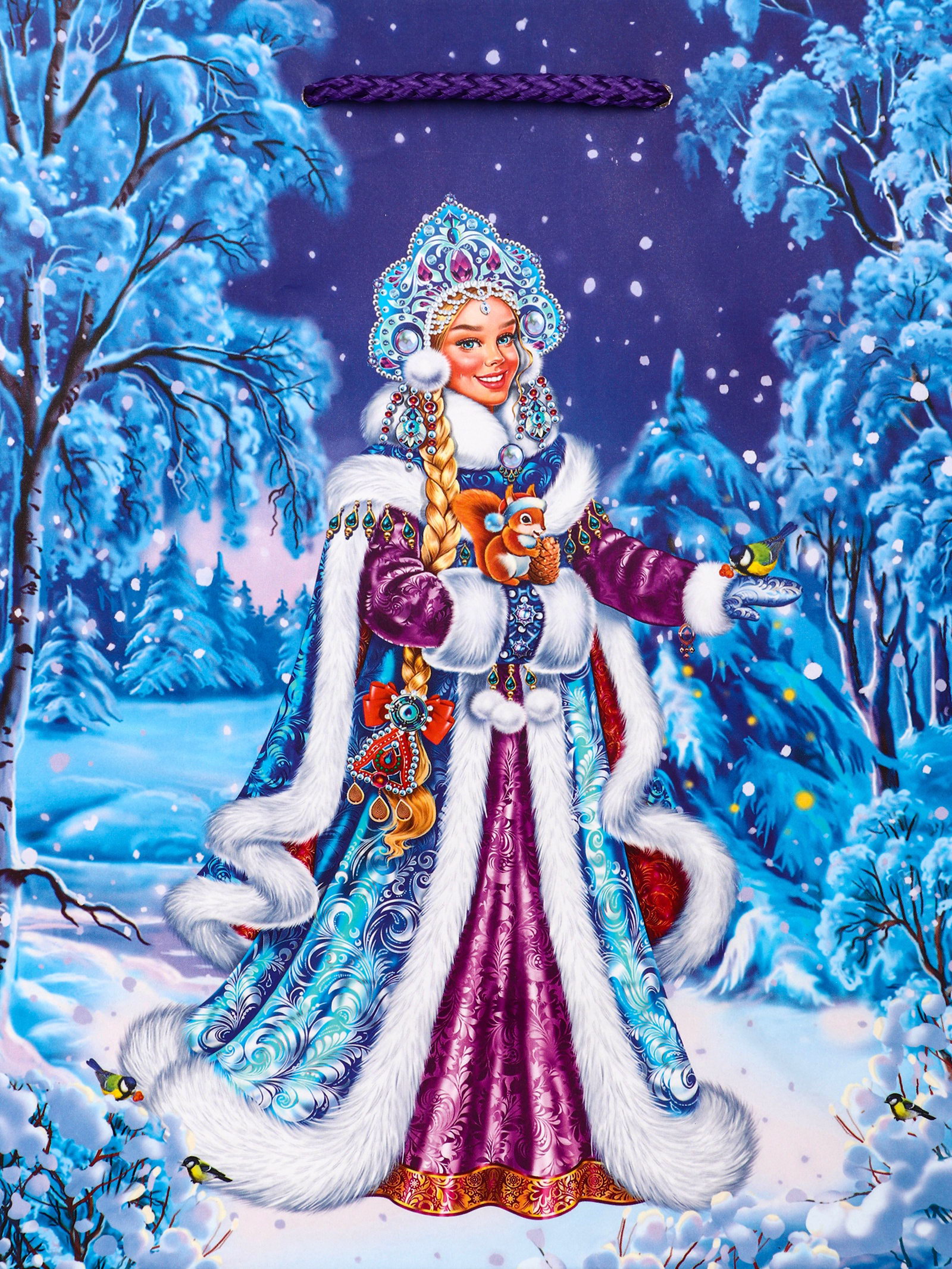 Пакет подарочный новогодний ламинированный, "Снегурочка", 18x10x22.3 см, Китай