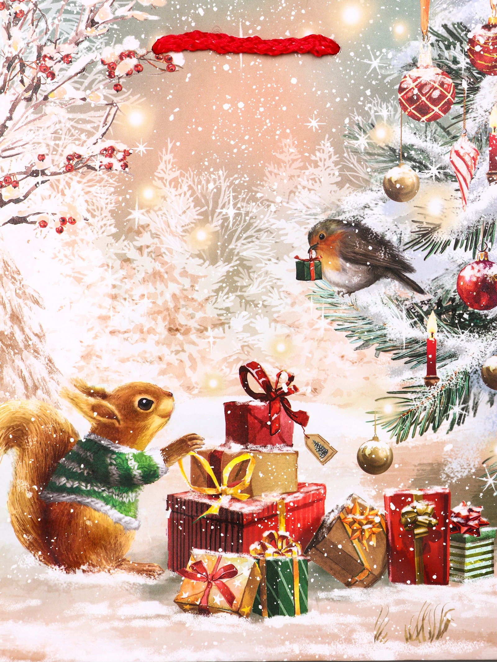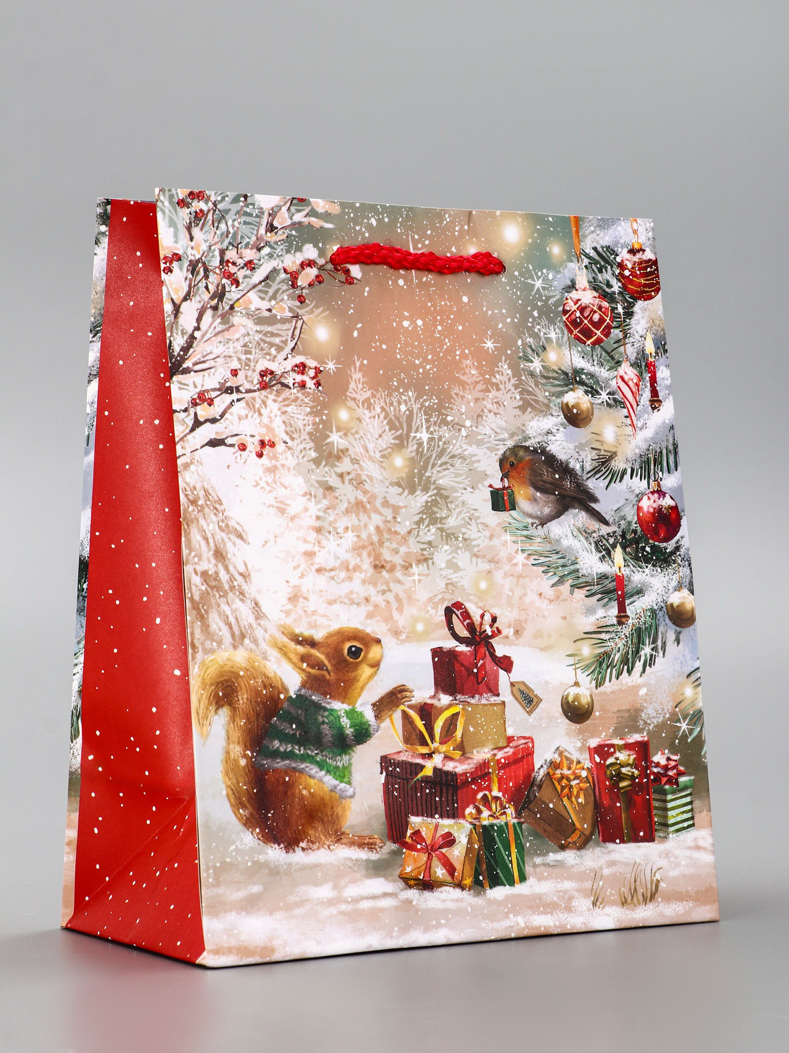 Пакет подарочный новогодний ламинированный, "Зверята ждут Новый Год ", 18x10x22.3 см, Китай