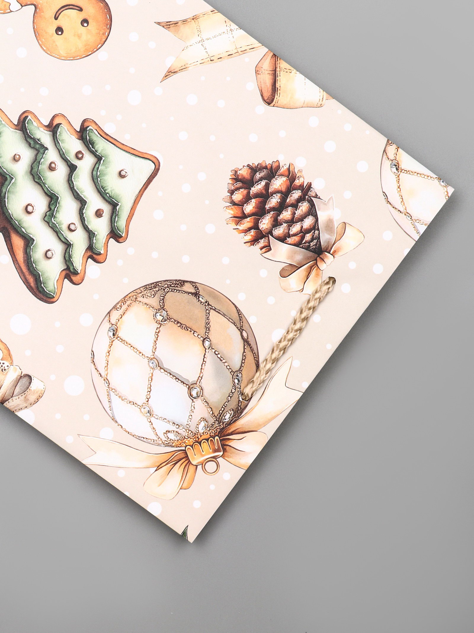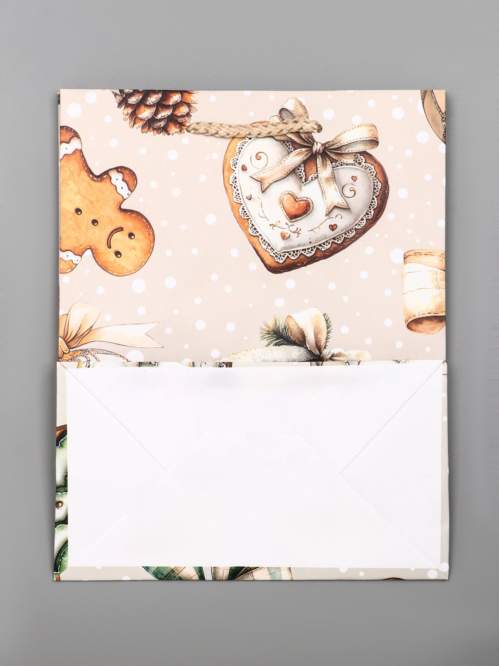 Для особенного момента: Этот пакет подчеркивает ценность момента вручения подарка. Универсальный бежевый фон и классическая новогодняя тематика делают его уместным для человека любого возраста. Вместо того чтобы прятать подарок в шкаф, его можно сразу выставить на видное место пакет сам по себе работает как декор. Подарочный пакет "Дед Мороз в лесу" это простой способ добавить магии самому обычному презенту и показать, что к его выбору подошли с душой. | ||