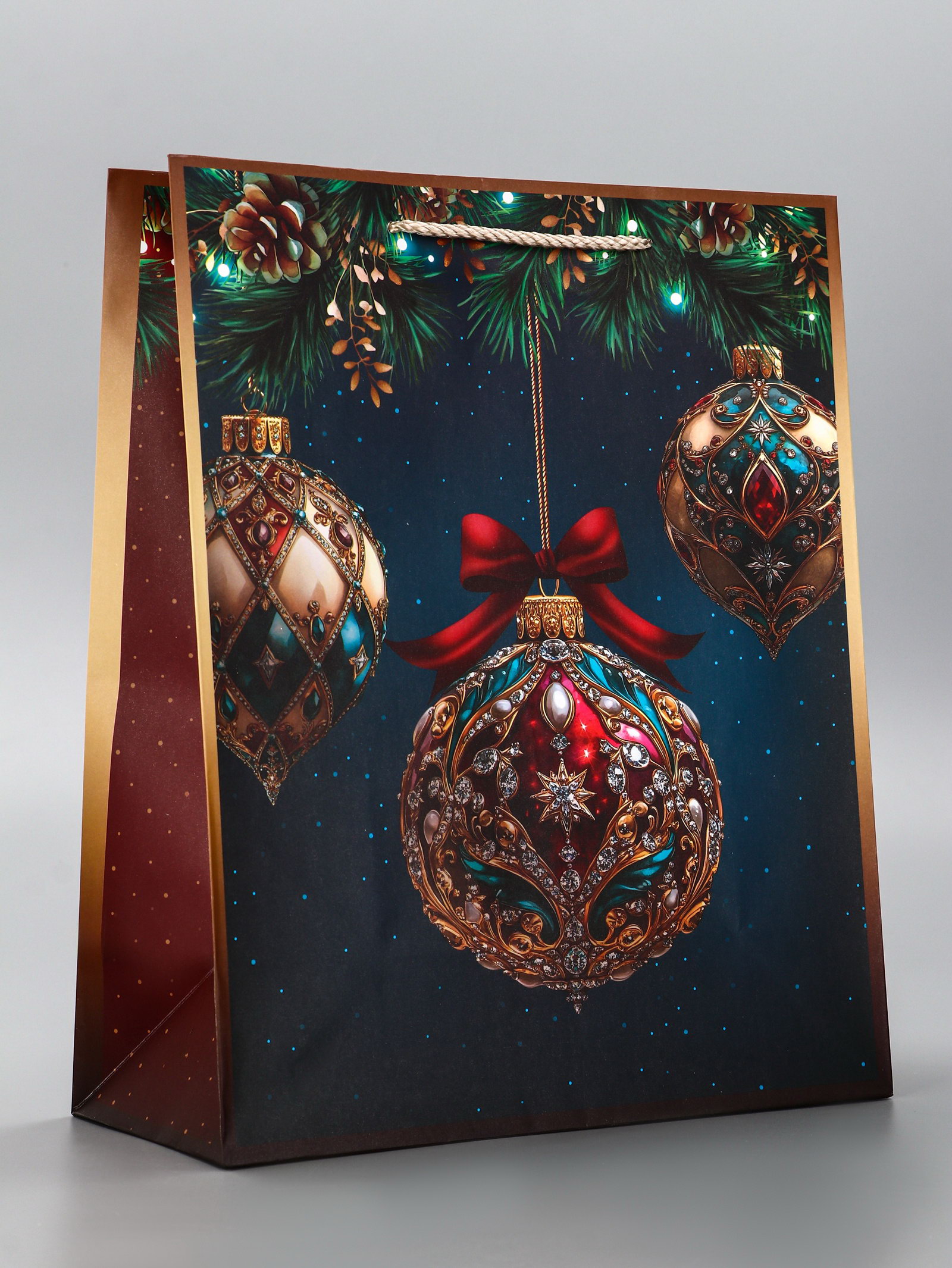 Пакет подарочный новогодний ламинированный, "Хрустальный шар", 26x12x32 см, Китай