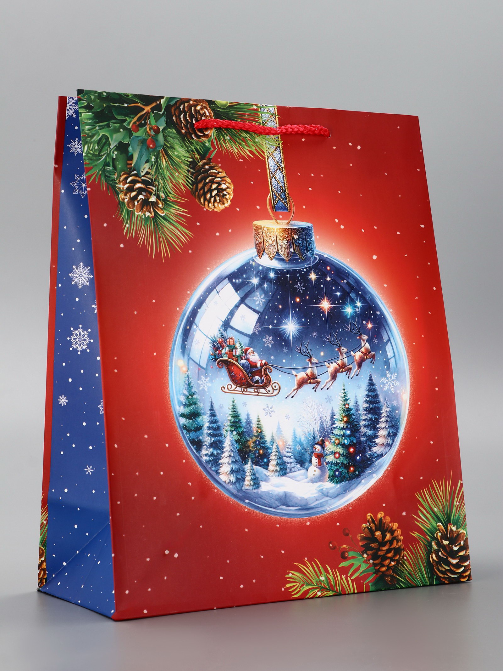 Пакет подарочный новогодний ламинированный, "Шар", 26x12x32 см, Китай