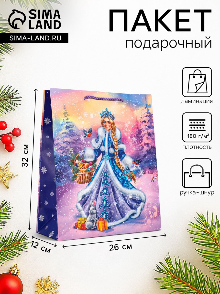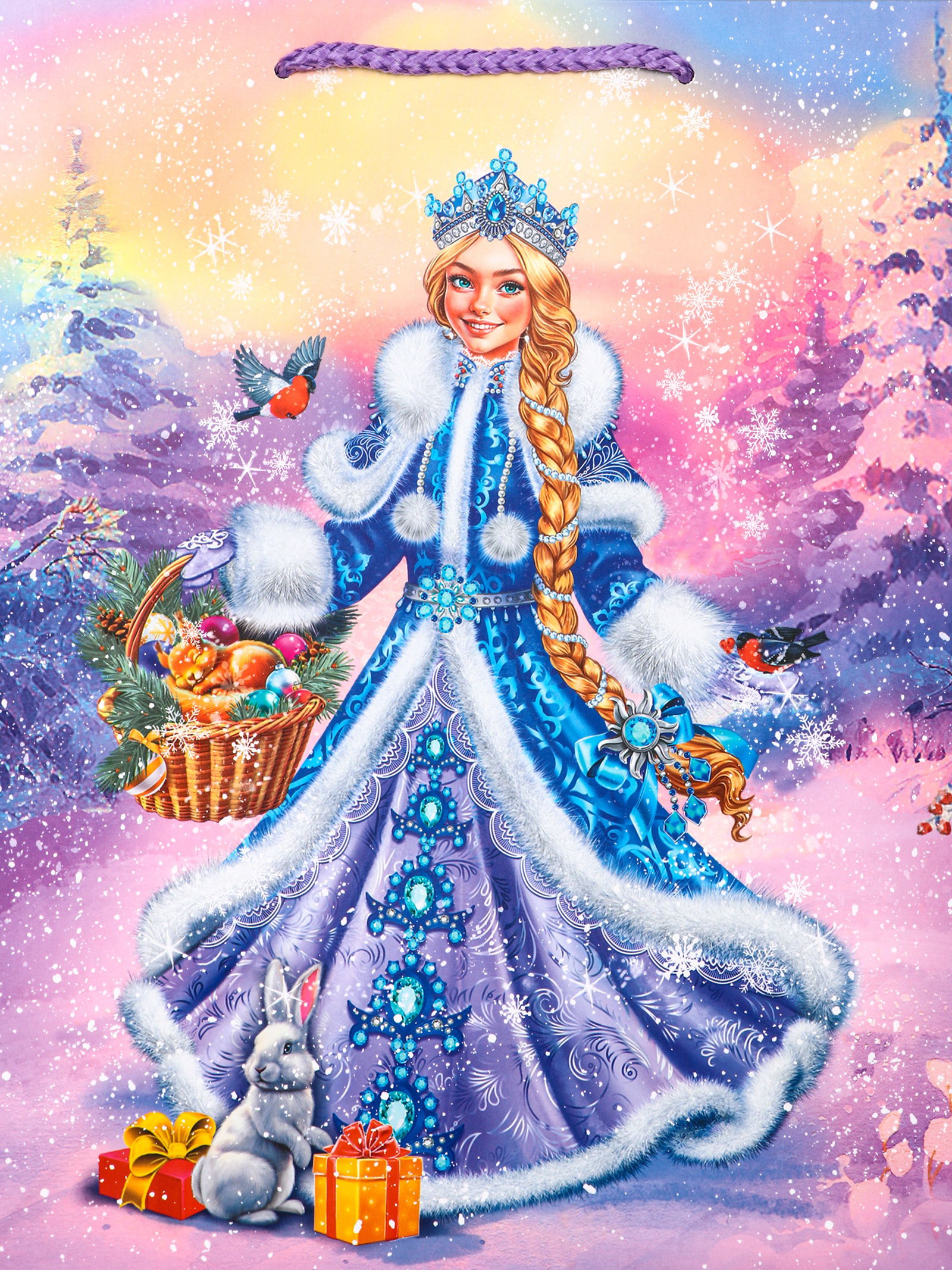 Пакет подарочный новогодний ламинированный, "Снегурочка и зайчик", 26x12x32 см, Китай