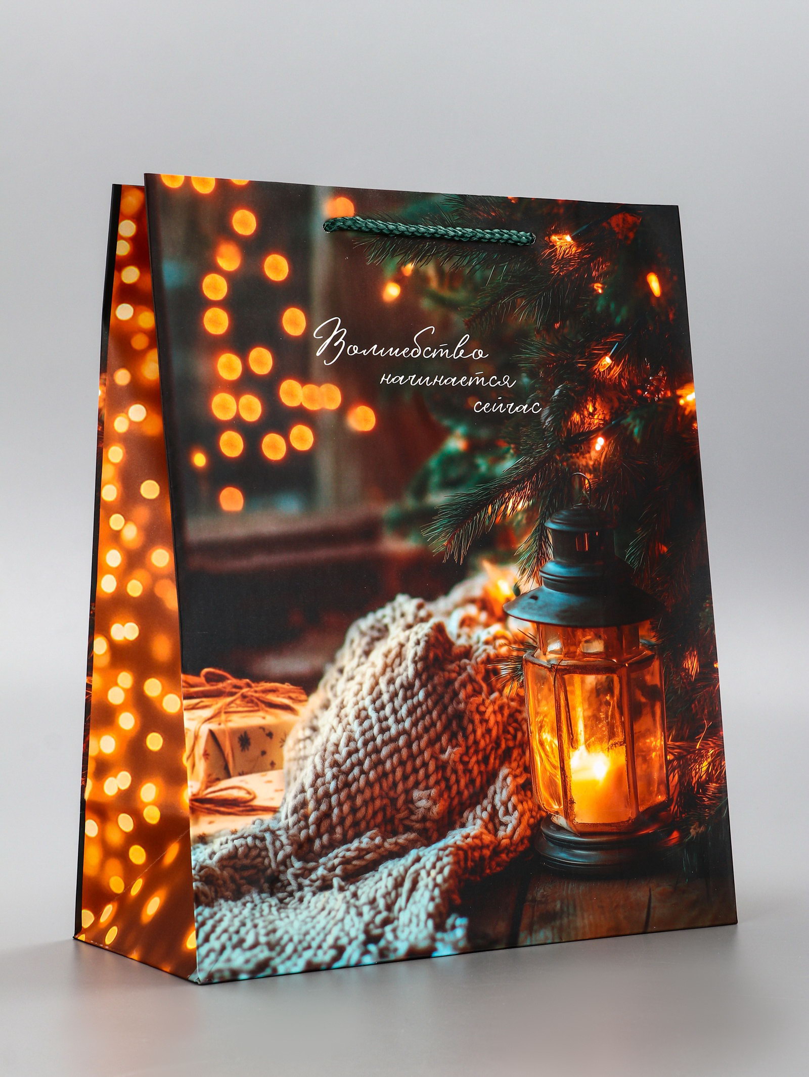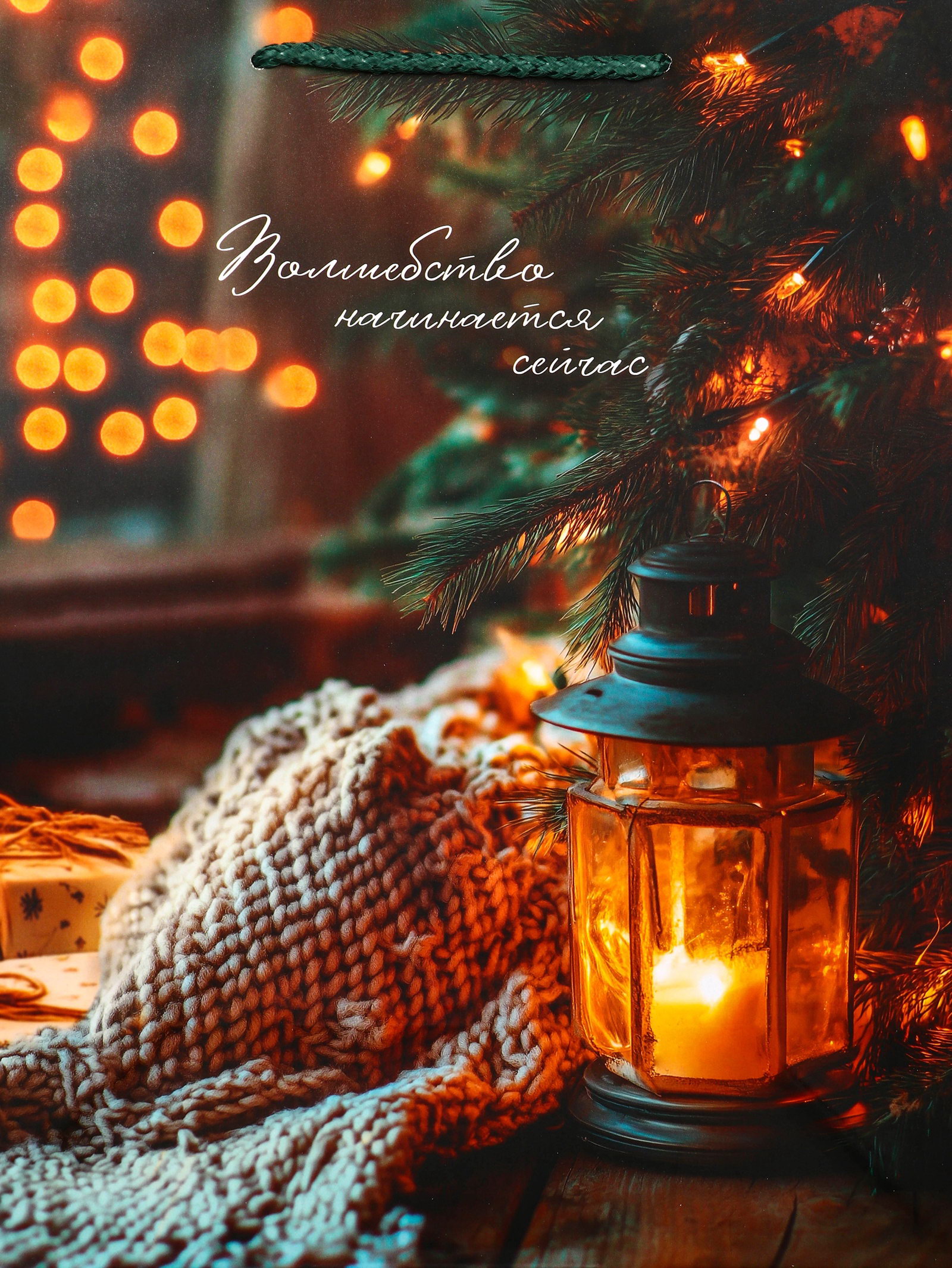 Пакет подарочный новогодний ламинированный, "Домашний уют Новыго Года", 26x12x32 см, Китай