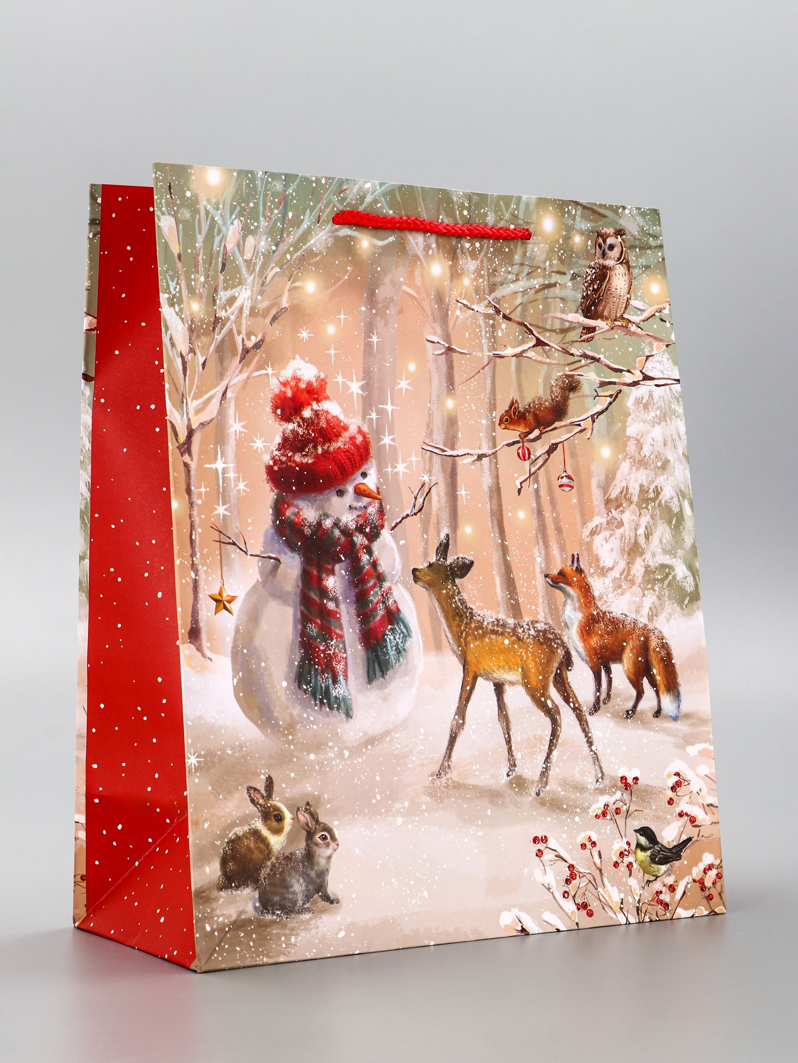 Пакет подарочный новогодний ламинированный, "Новогодняя ночь", 26x12x32 см, Китай