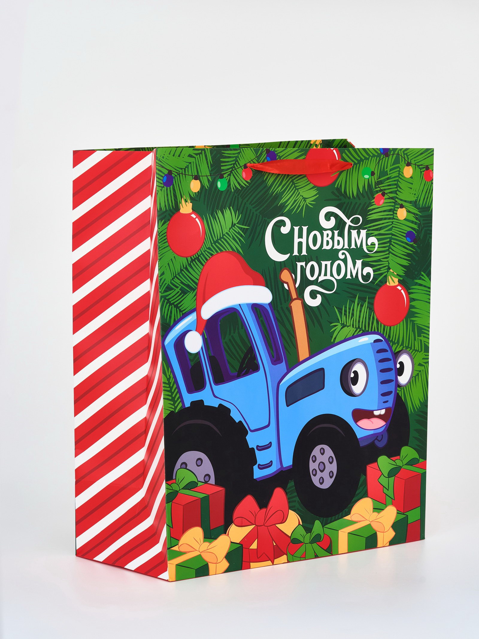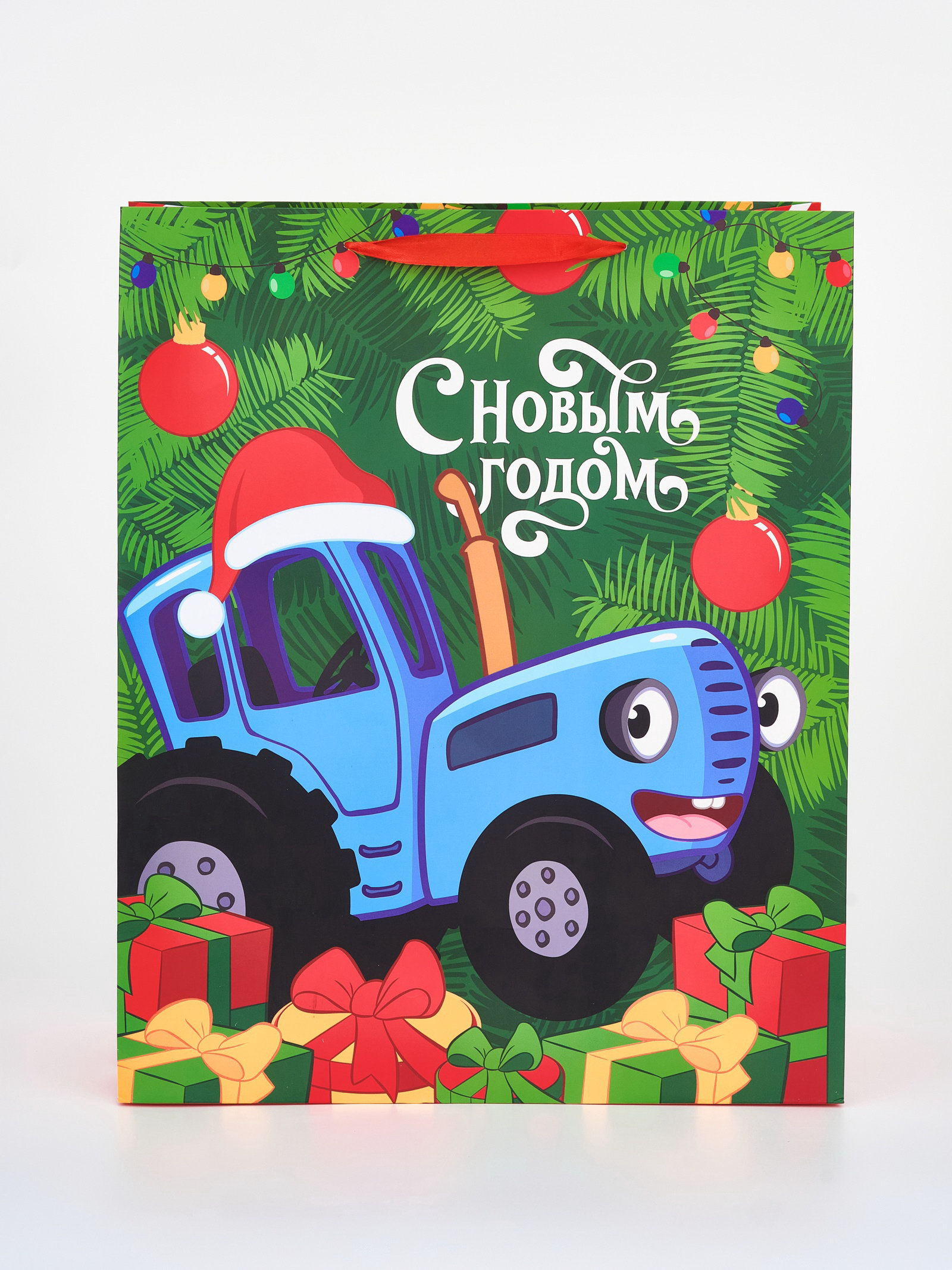 Пакет подарочный "С Новым годом", XL 40x49x19 см, 40x49x19 см., Синий трактор, Китай