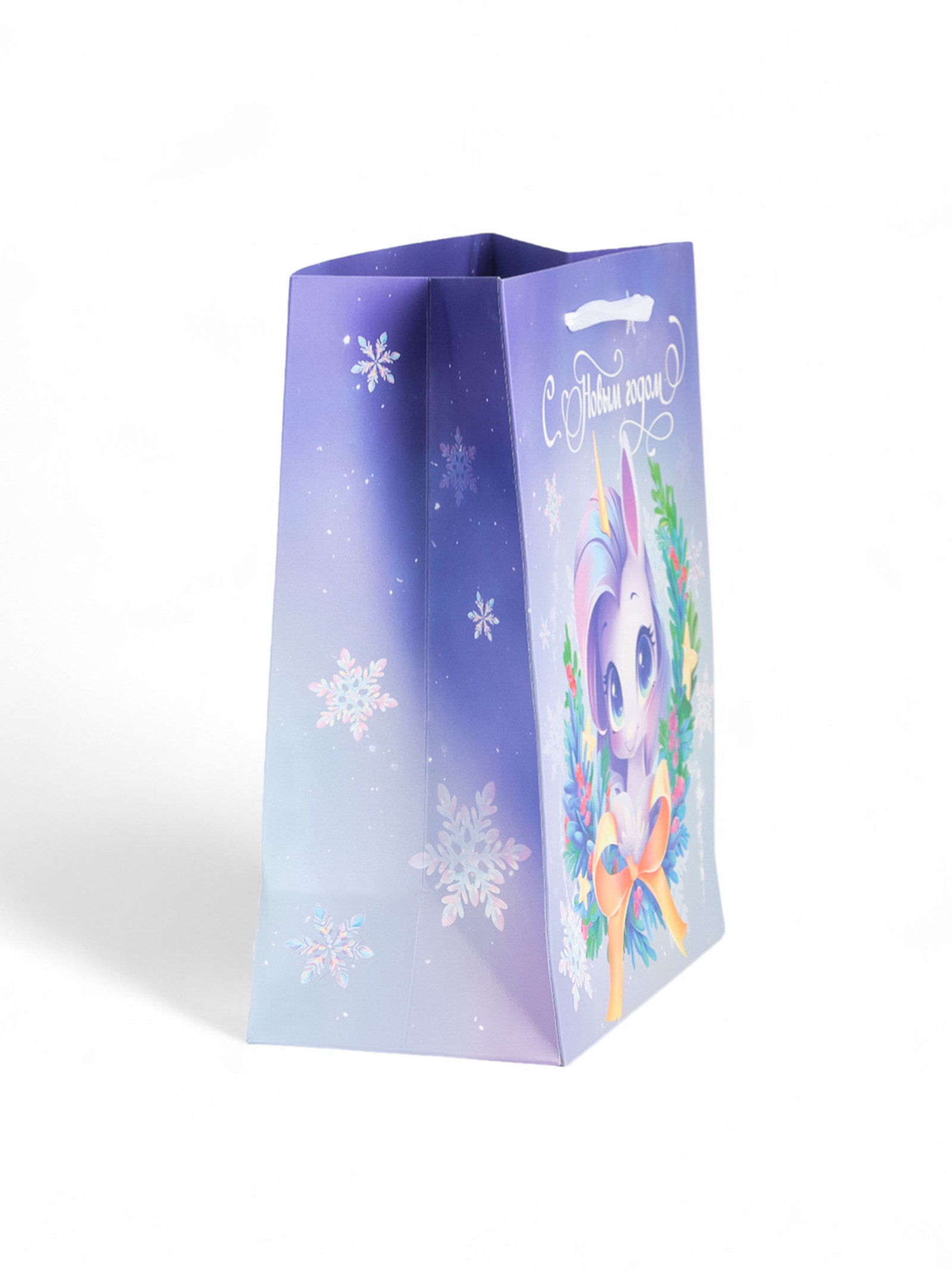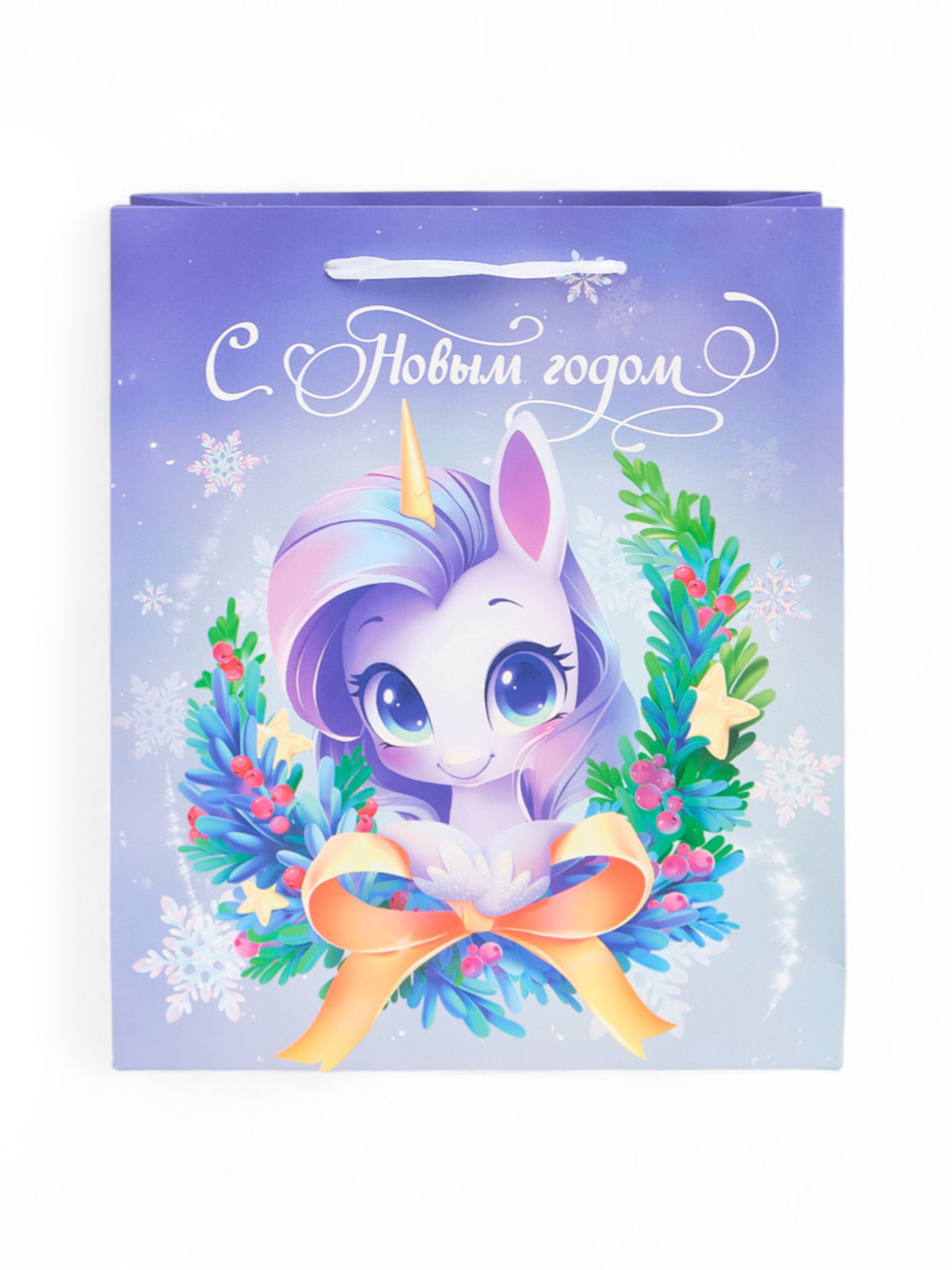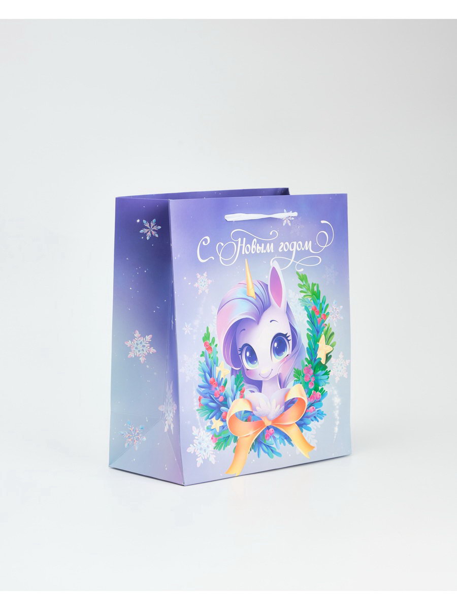 Пакет новогодний ламинированный подарочный "Новый год 2026", единорог, ML 23x27x11.5 см, 27x23x11.5 см., Дарите Счастье, Китай